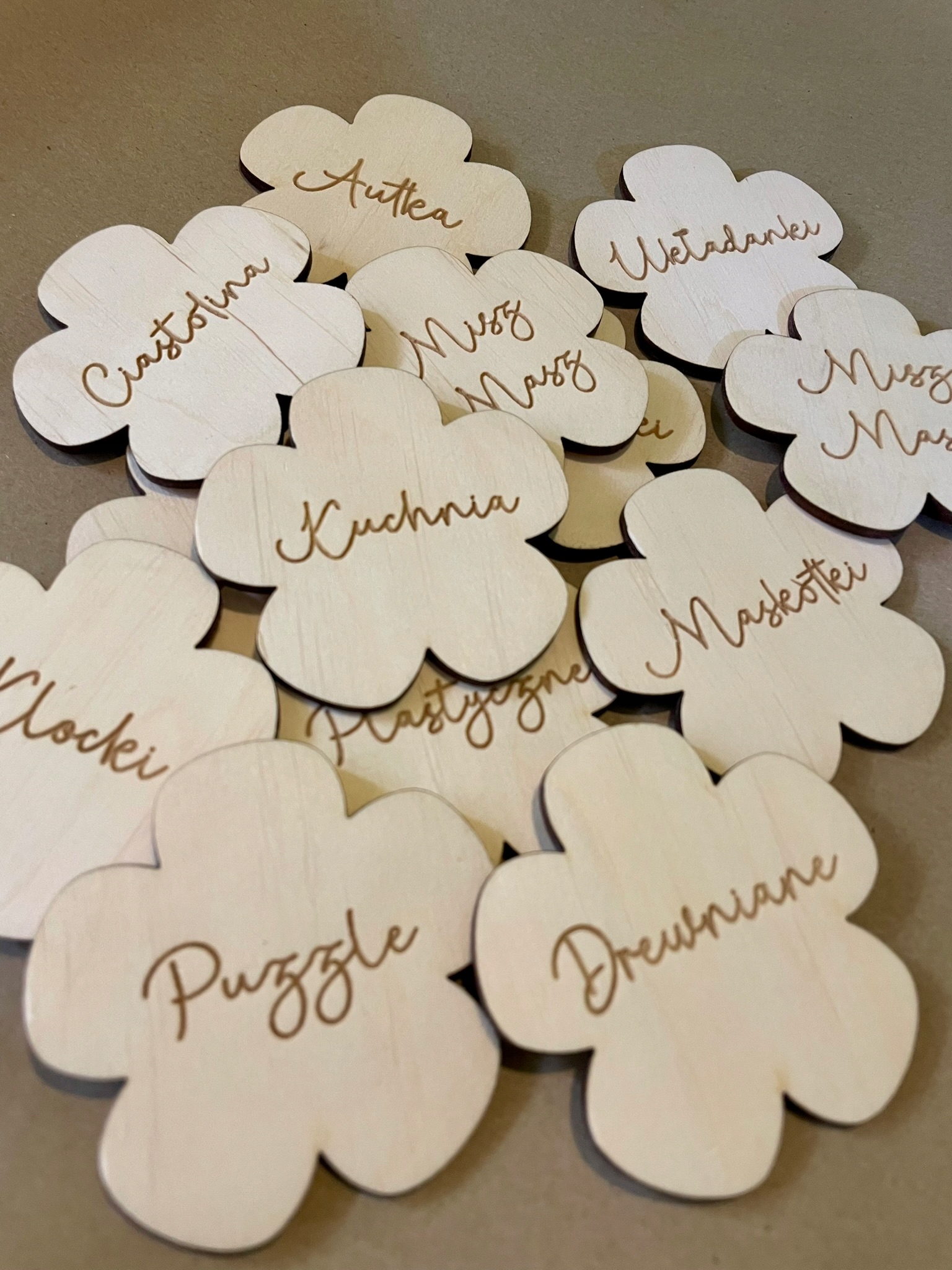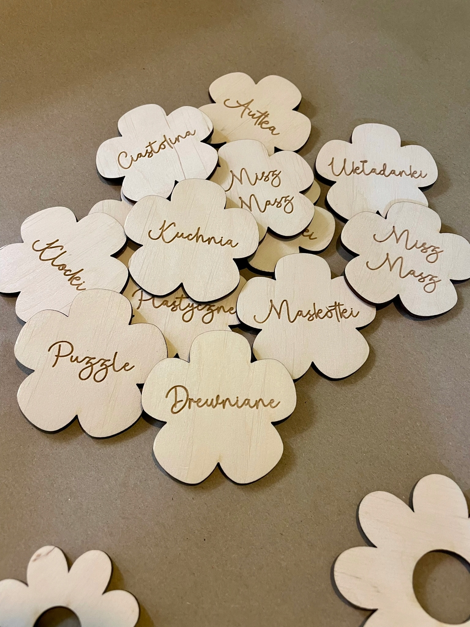А може гарні ромашки? Дерев'яні таблички у формі модних квітів з піктограмами для контейнерів, шаф, ящиків, ящиків. Витримані в стилі бохо, вони чудово впишуться в інтер'єр кімнати вашого малюка. Їхня дуже важлива функція — контролювати хаос у кімнаті дитини та створювати для неї безпечний простір відповідно до принципів Монтессорі. Таким чином ви забезпечите більший розвиток вашої дитини.