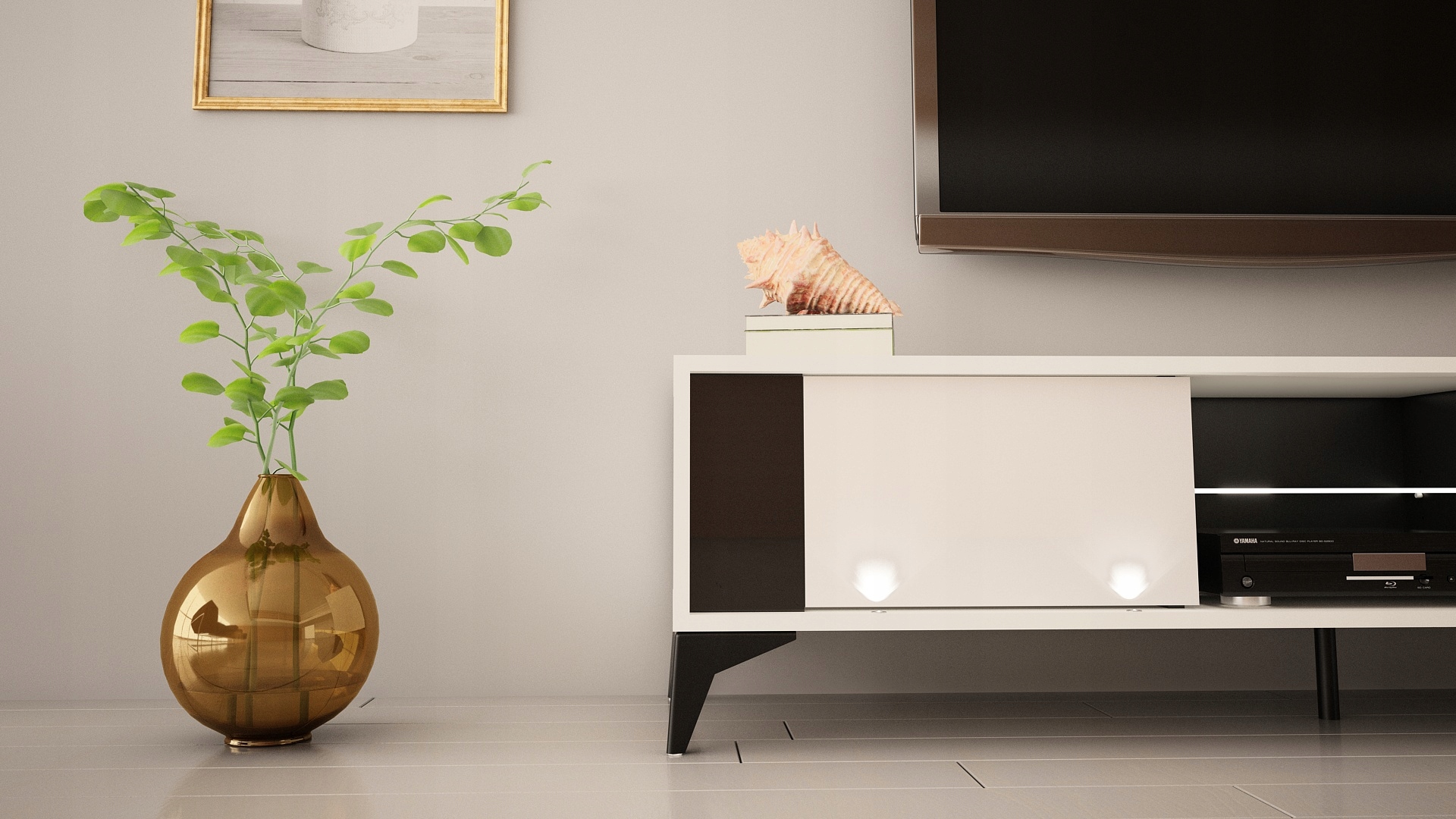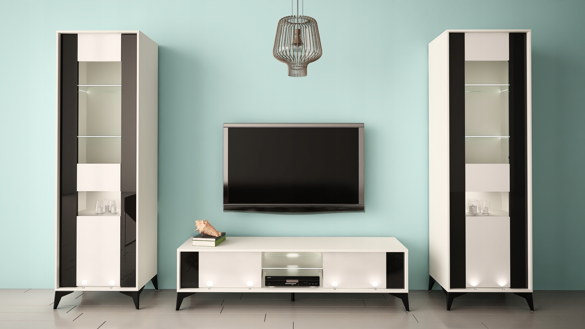 ТВ-тумба - це рішення, призначене особливо для сучасних віталень. Він одночасно мінімалістичний і елегантний, тому відповідає очікуванням найвибагливіших клієнтів. Має 2 полиці, в тому числі одну скляну для RTV обладнання, а також місткі полиці, що відкриваються для інших дрібниць. Меблі доступні в трьох колірних конфігураціях: