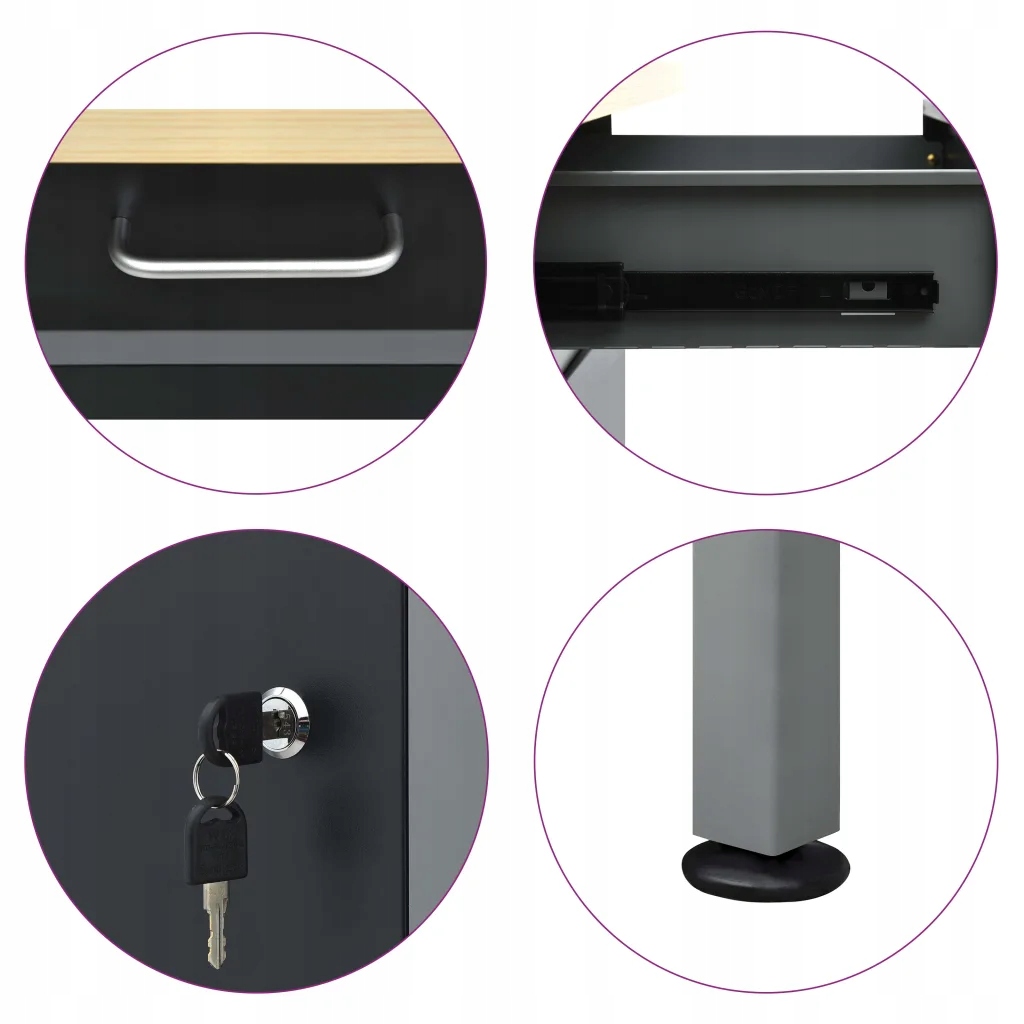 - Максимум навантаження на один хройд: Шість ящиків на путівниках з кульковими підшипниками, що забезпечує плавне та легке відкриття. Вони допомагають підтримувати порядок та організацію, зберігати інструменти, гвинти, нігті та клейку стрічку. Крім того, стіл має велику шафу із закритими дверима, ідеально підходить для великих інструментів, таких як свердла або шліфувальні машини.