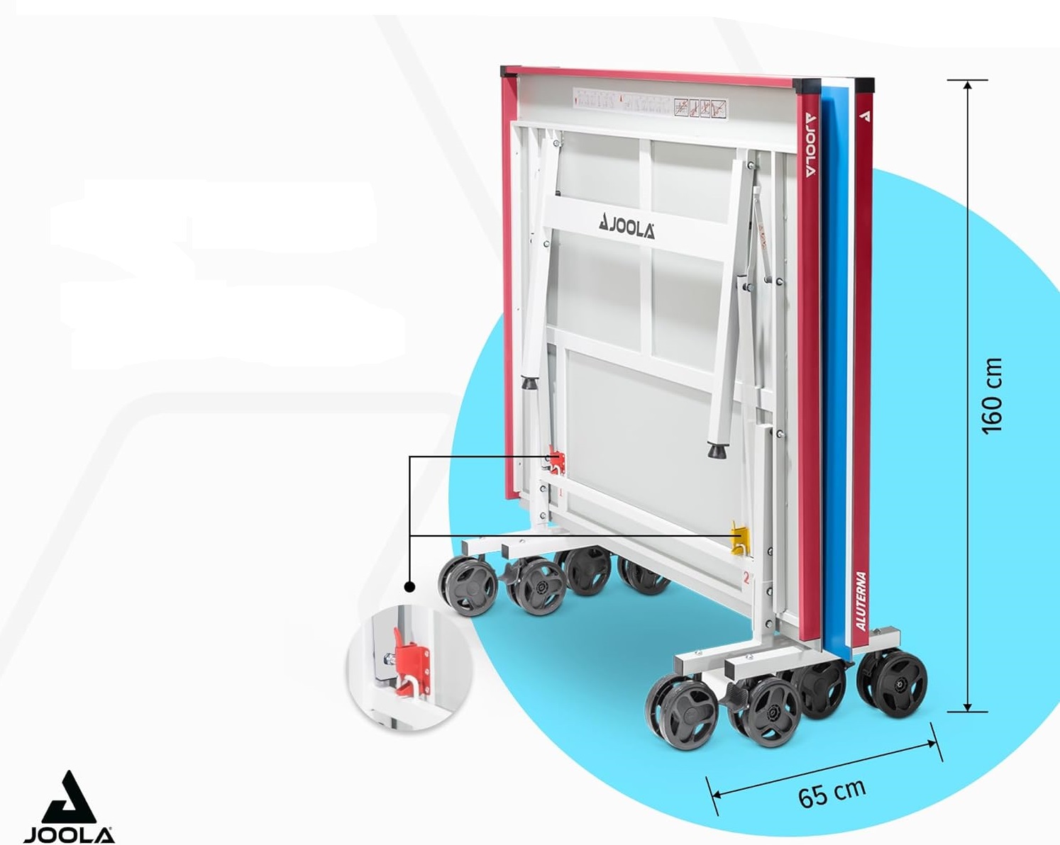 тенісна стіл Joola Outdoor Aluterna - ідеальний стіл для використання зовні. переконує високоякісні показники, а також хороші властивості гри. Завдяки поверхні, виготовленому з алюмінію та пластику товщиною 6 мм, він завжди грає приємно і з ідеальним відображенням кулі.