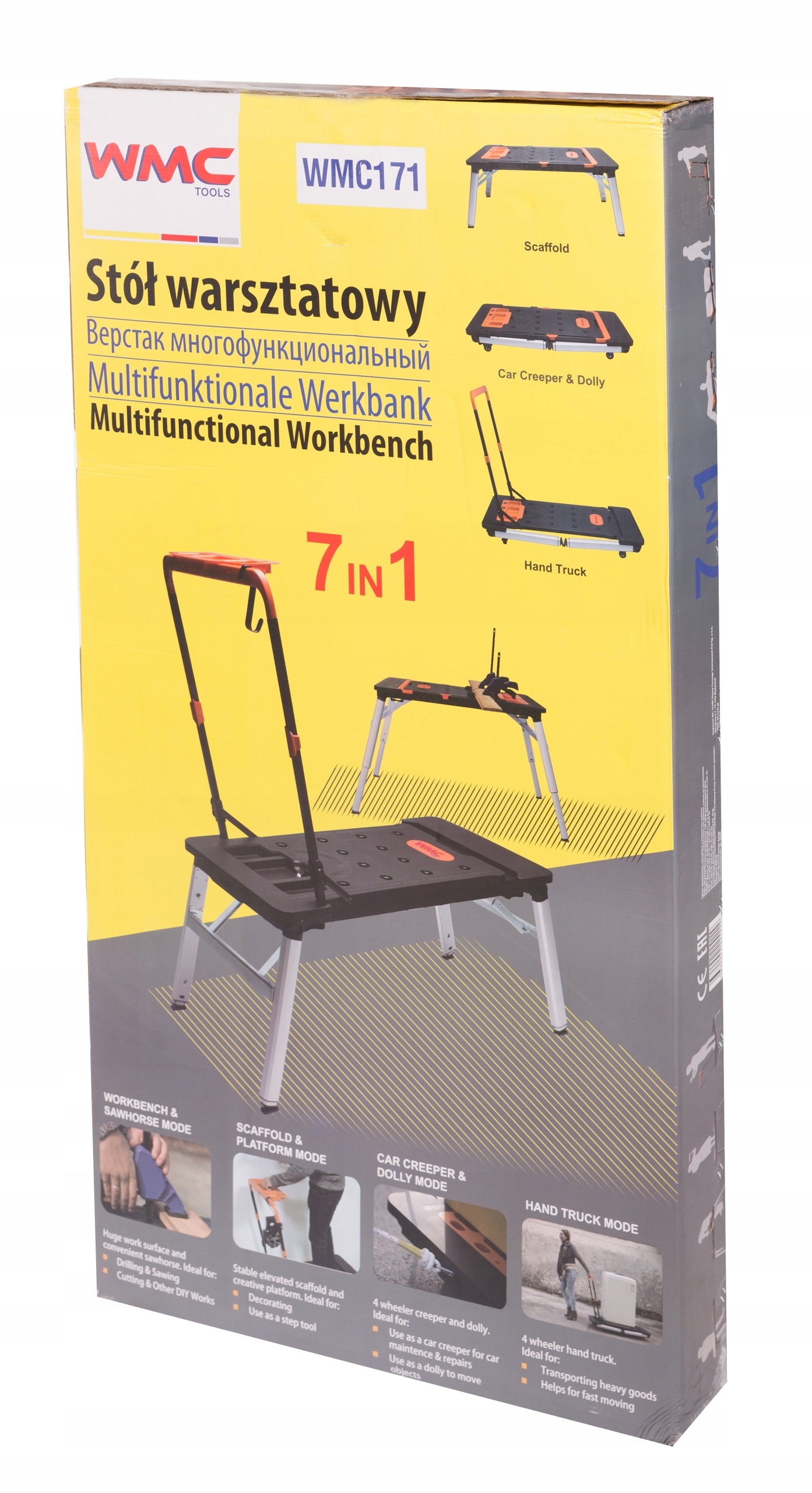 - 7 функцій в одному пристрої: таблиця майстерні, коляска, ліси, робоча платформа, кушетка для майстерні, пристрій водіння, ручний візок