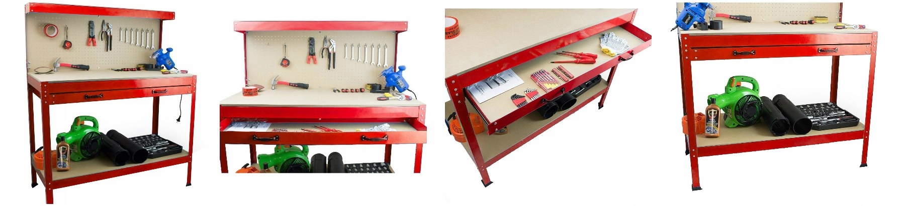 Практична, універсальна таблиця, безумовно, буде хорошим рішенням для кожного саморобки. Він оснащений ручками для інструментів та ящика. Завдяки цьому ви можете легко зберегти замовлення на семінар і значно полегшити роботу.