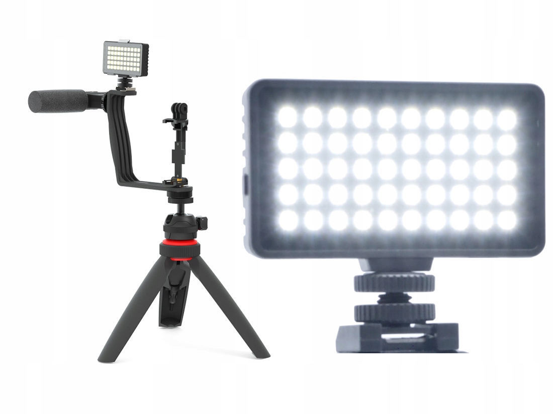 Набір набору суперзірки, що є основним набором Vlogging, містить компактну відео-лампу з 50 світлодіодами, які задовольнять ваші потреби з точки зору фотографії та зйомки. Мікрофон "рушниці" з часом запису до 800 годин, тому вам ніколи не доведеться хвилюватися, що під час зйомок не буде звуку. Багатофункціональний штатив, який має знімний, побудований бездротовий пілот та смартфон/спортивний камера з кронштейном, яка допомагає встановити всі елементи, що містяться в цьому наборі. Завдяки цьому ви можете підключити свій телефон або камеру та створити повний набір для запису vlogs.