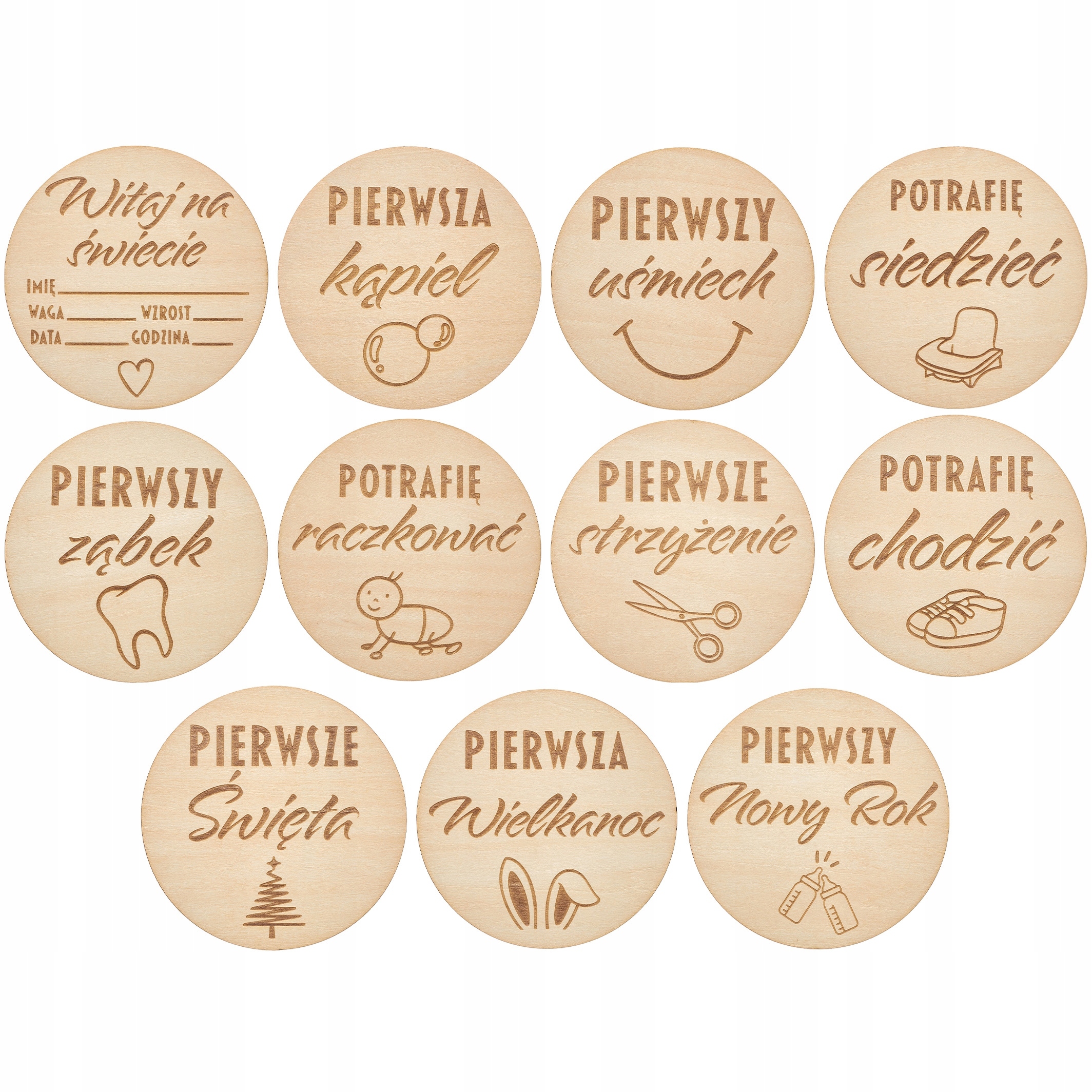 TABLICZKI DREWNIANE KARTY DO ZDJĘĆ PIERWSZY ROK IMIĘ ZESTAW 27 SZTUK