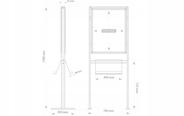 Дошка містить гнучку антивідблискову плівку з УФ-фільтром, яка пригнічує відбиття світла та таким чином захищає плакат від вицвітання. Доступні в різних версіях і розмірах. Полиця з оргскла, яку видно на фото, доступна як окремий аксесуар - в комплект не входить.