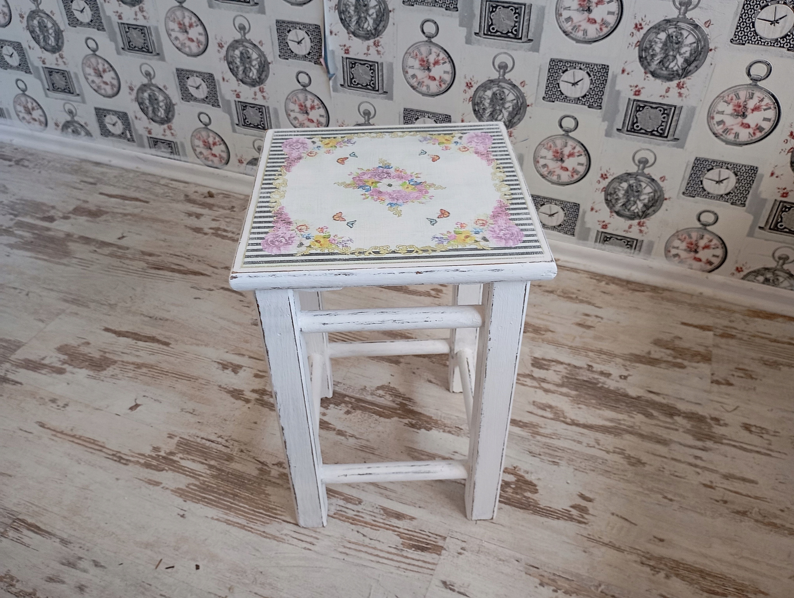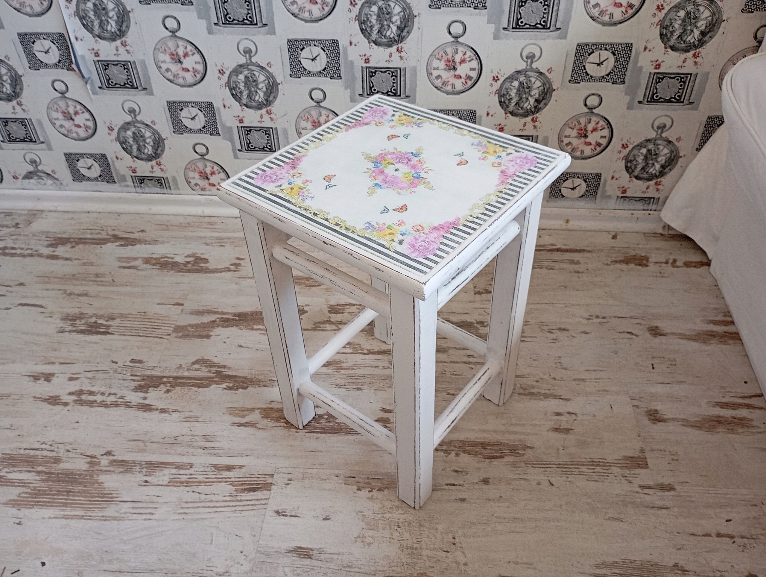 TABORET,STOŁEK, STOLICZEK, KWIATY, SHABBY CHIC