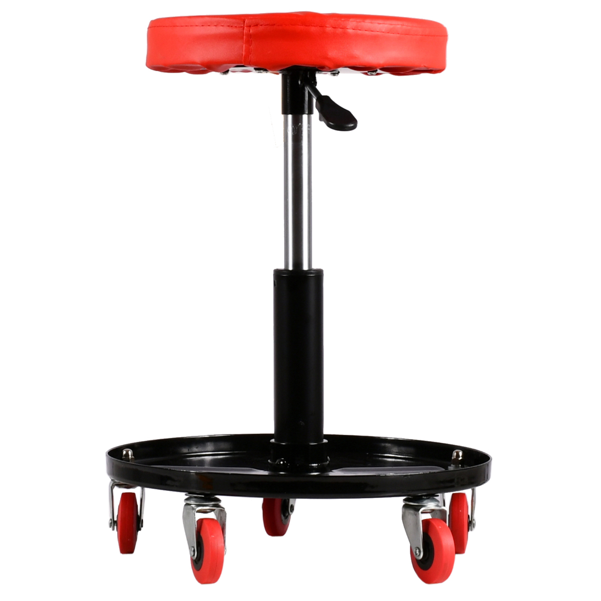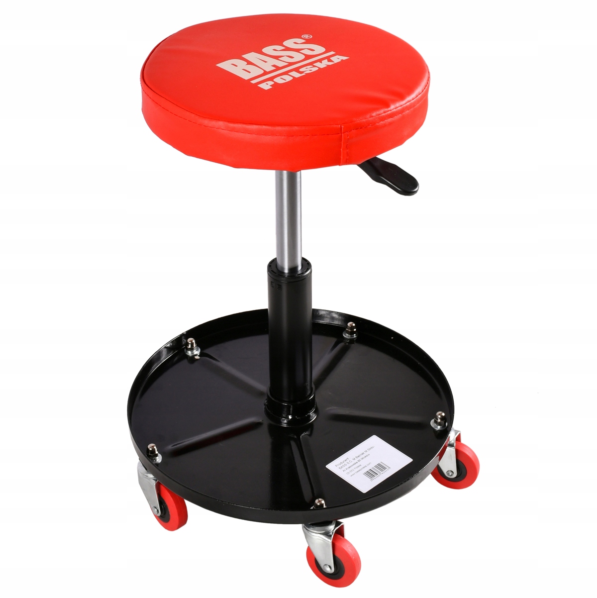 Сидіння з екошкіри з посиленою сталевою конструкцією, з п'ятьма колесами, що обертаються на 360°, що забезпечує свободу руху під час роботи в майстерні.