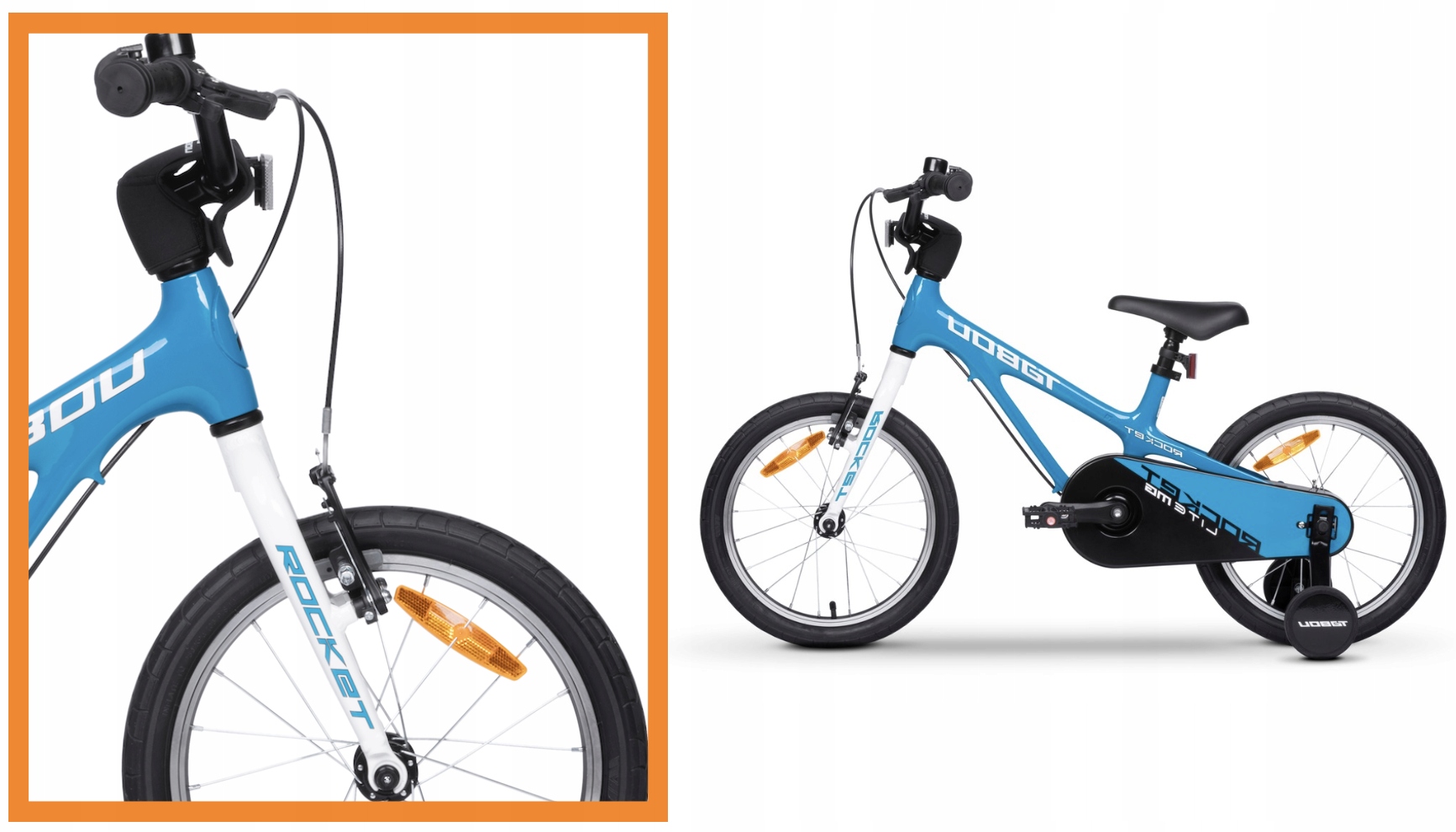 Класичний алюміній гальмові гальма V-гальма (спереду) та смугове гальмо розміщені на кермі, вони дозволять дитині ефективно зупинитися в будь-яких умовах. Встановлений вільне колеса 16t гарантує неприємності -безперебійне водіння.