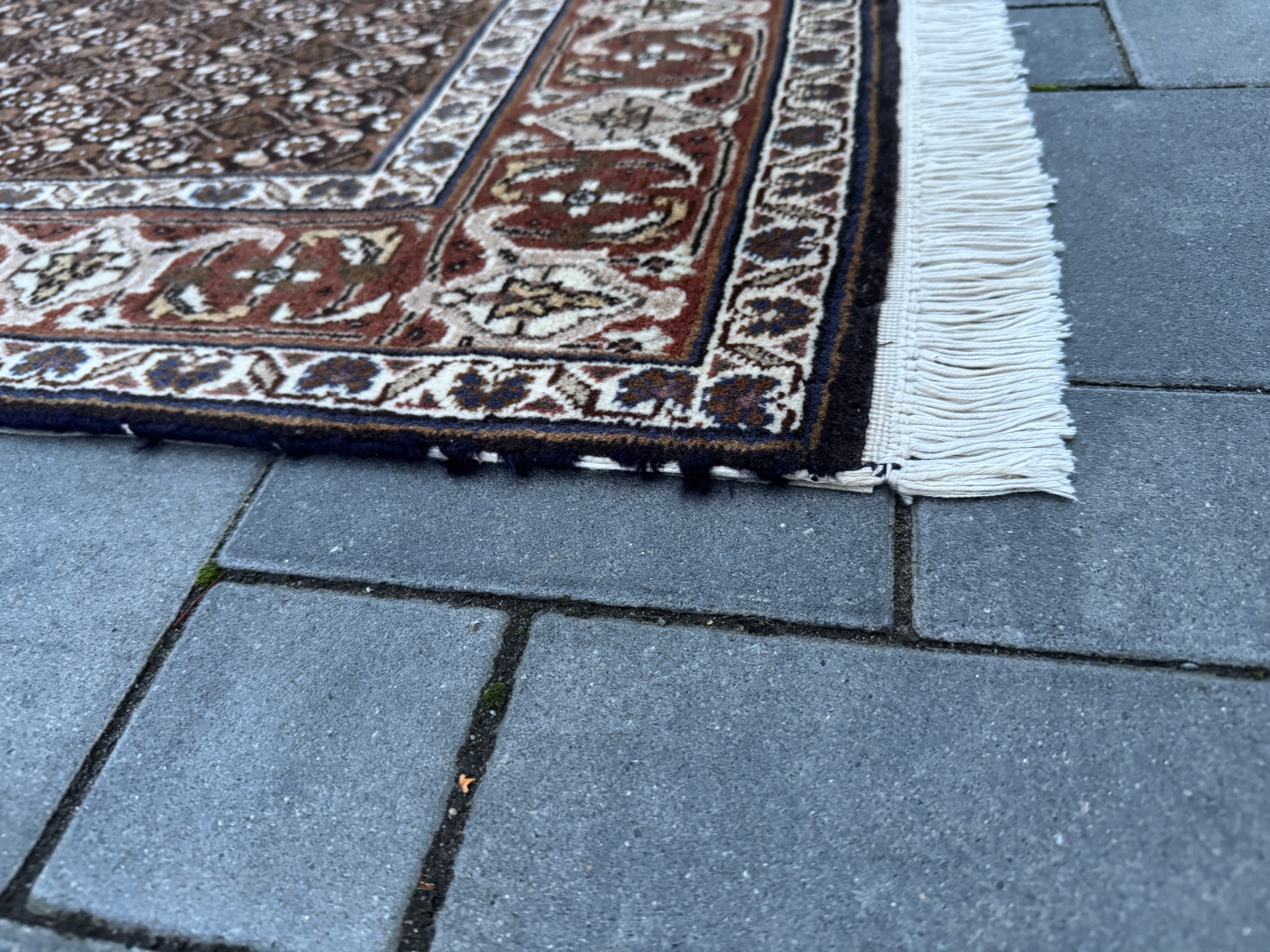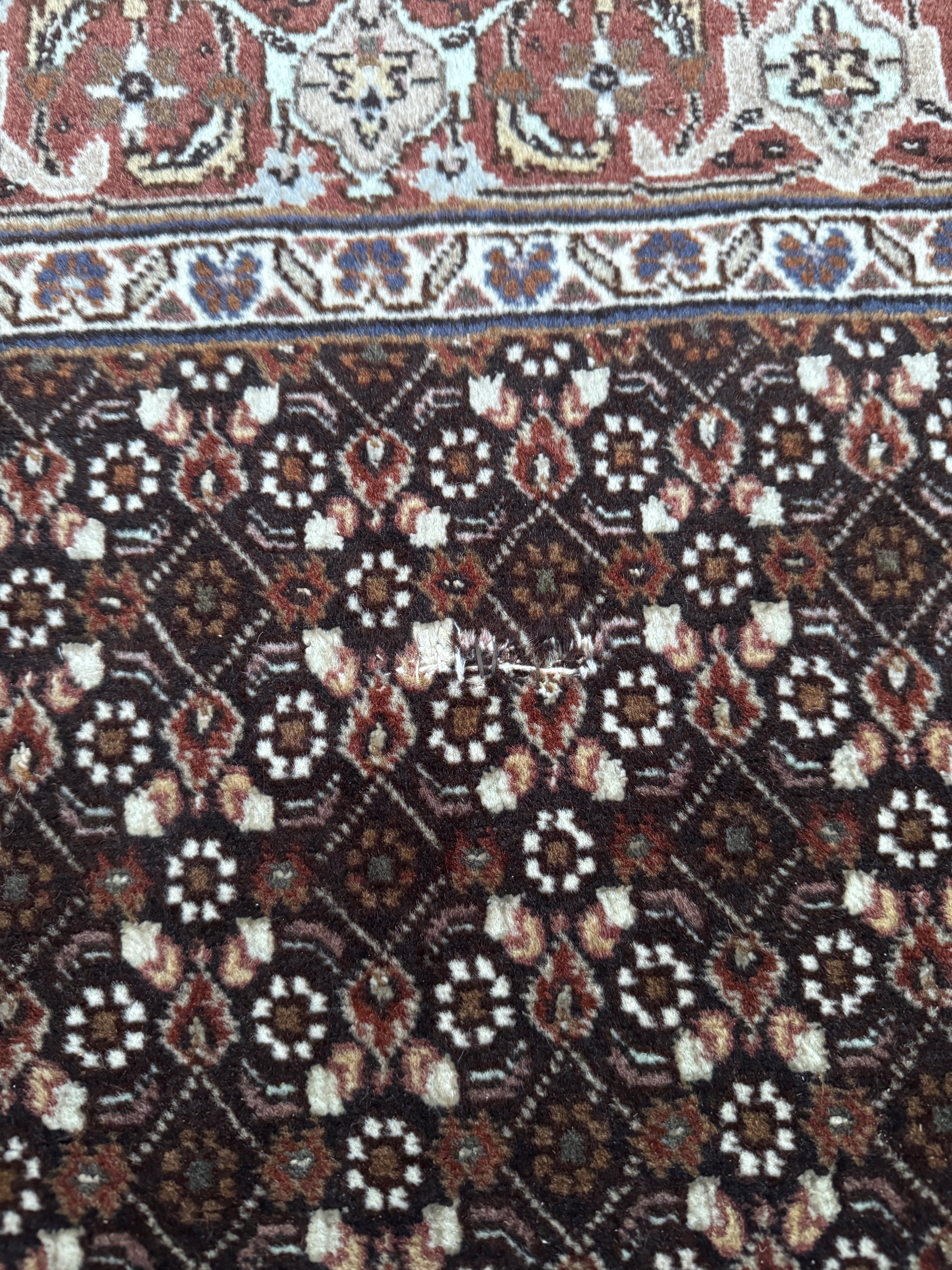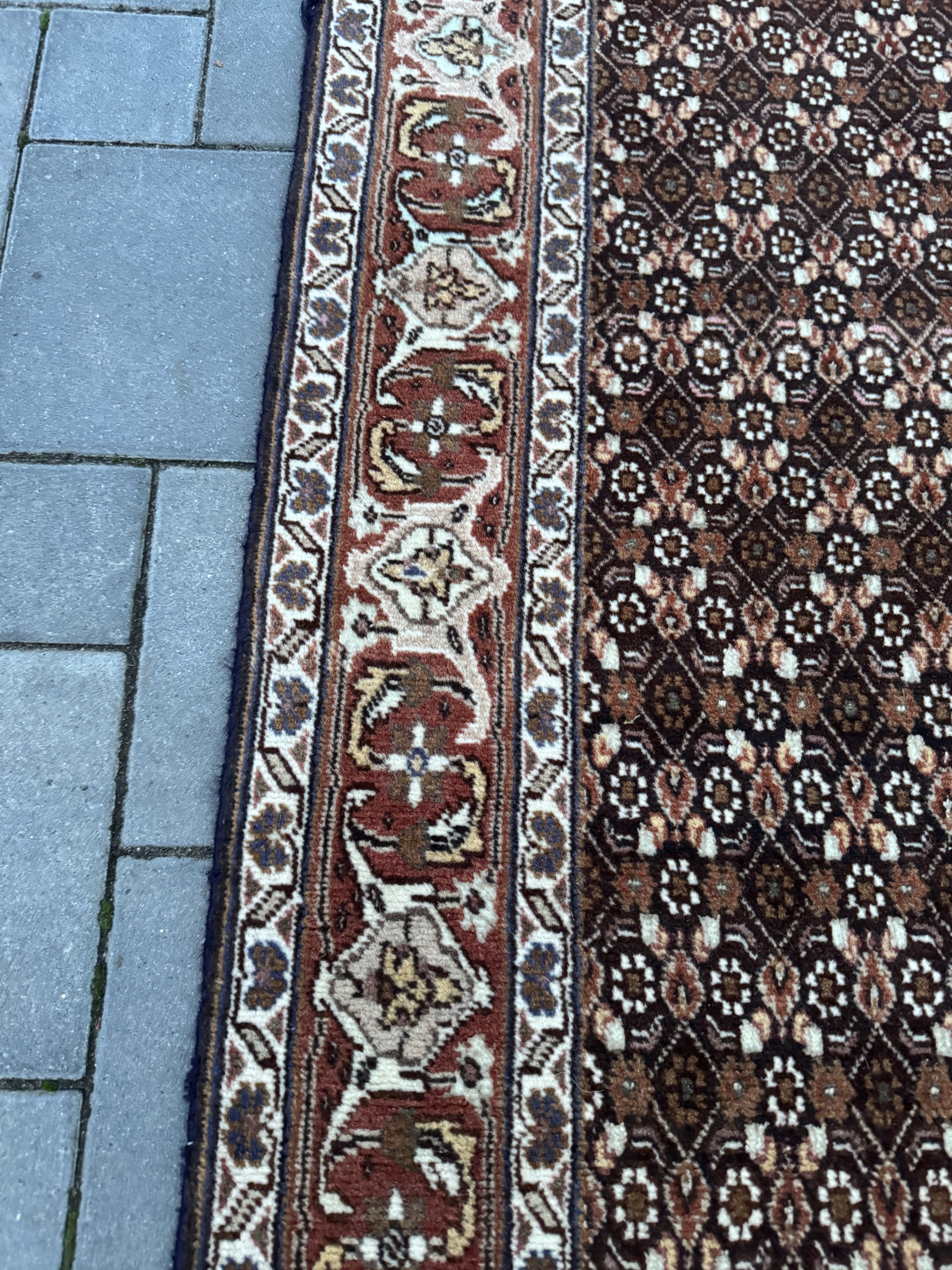 Килим б/в і в хорошому стані, ніжна патина, невеликі пошкодження по краю і в ворсі. До оновлення.