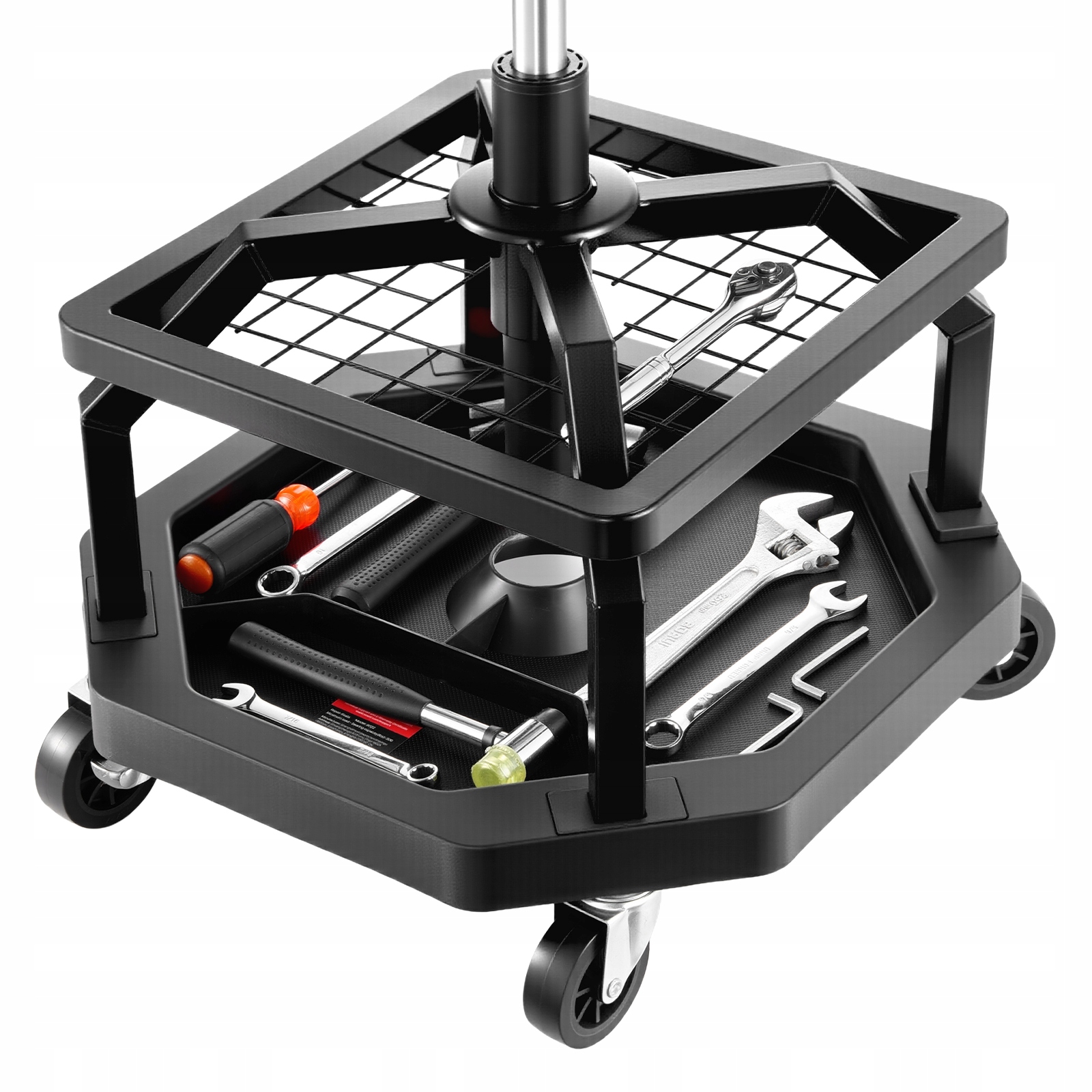 Подвійне зберігання: цей табурет для майстерні має два великих відділення для інструментів, що дозволяє легко зберігати гайкові ключі, гвинти та інші інструменти, що робить ваші ремонтні роботи більш ефективними.