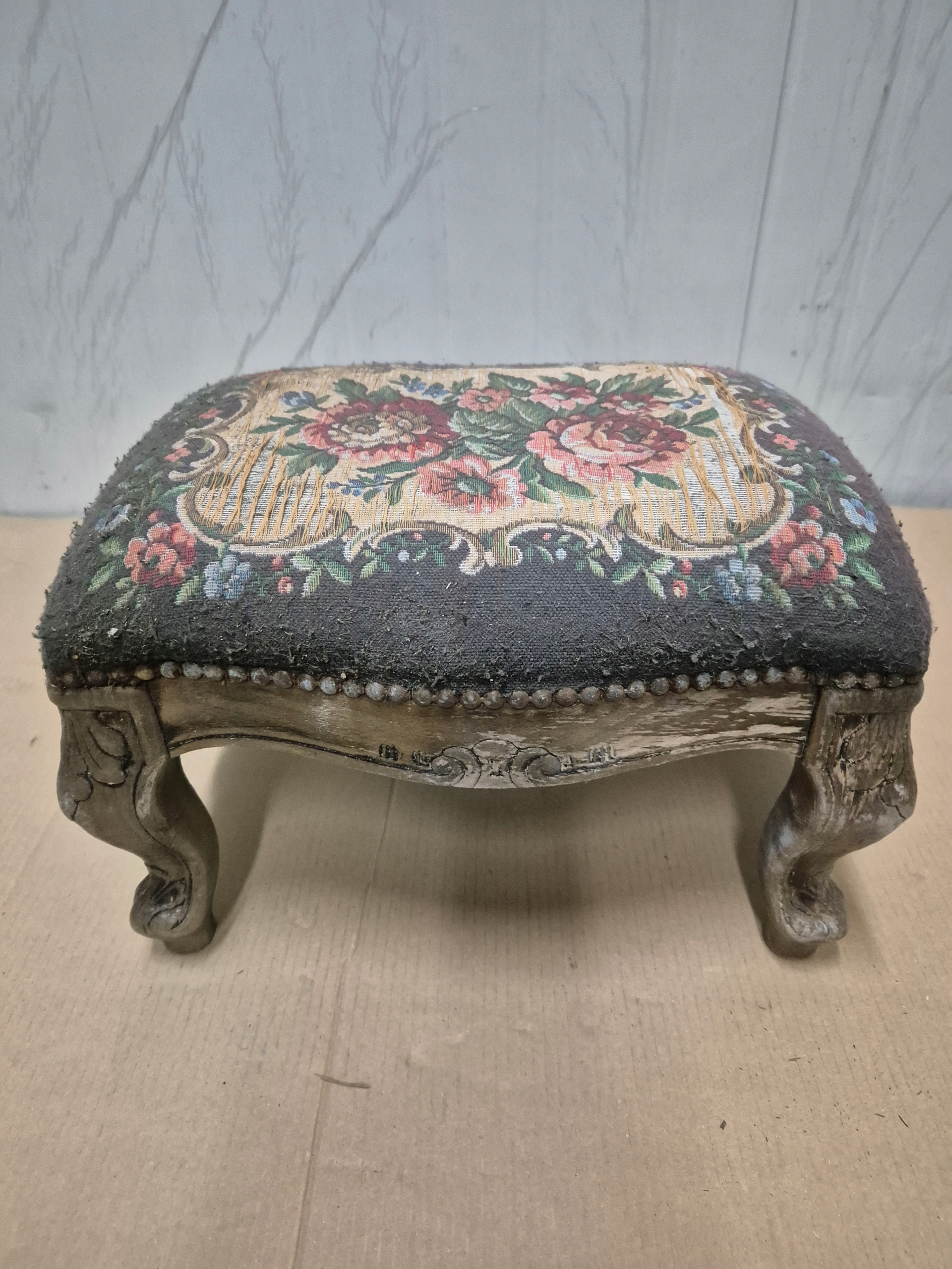 Табурет для ніг у вінтажному стилі 1940-х років із квітковою вишивкою голкою