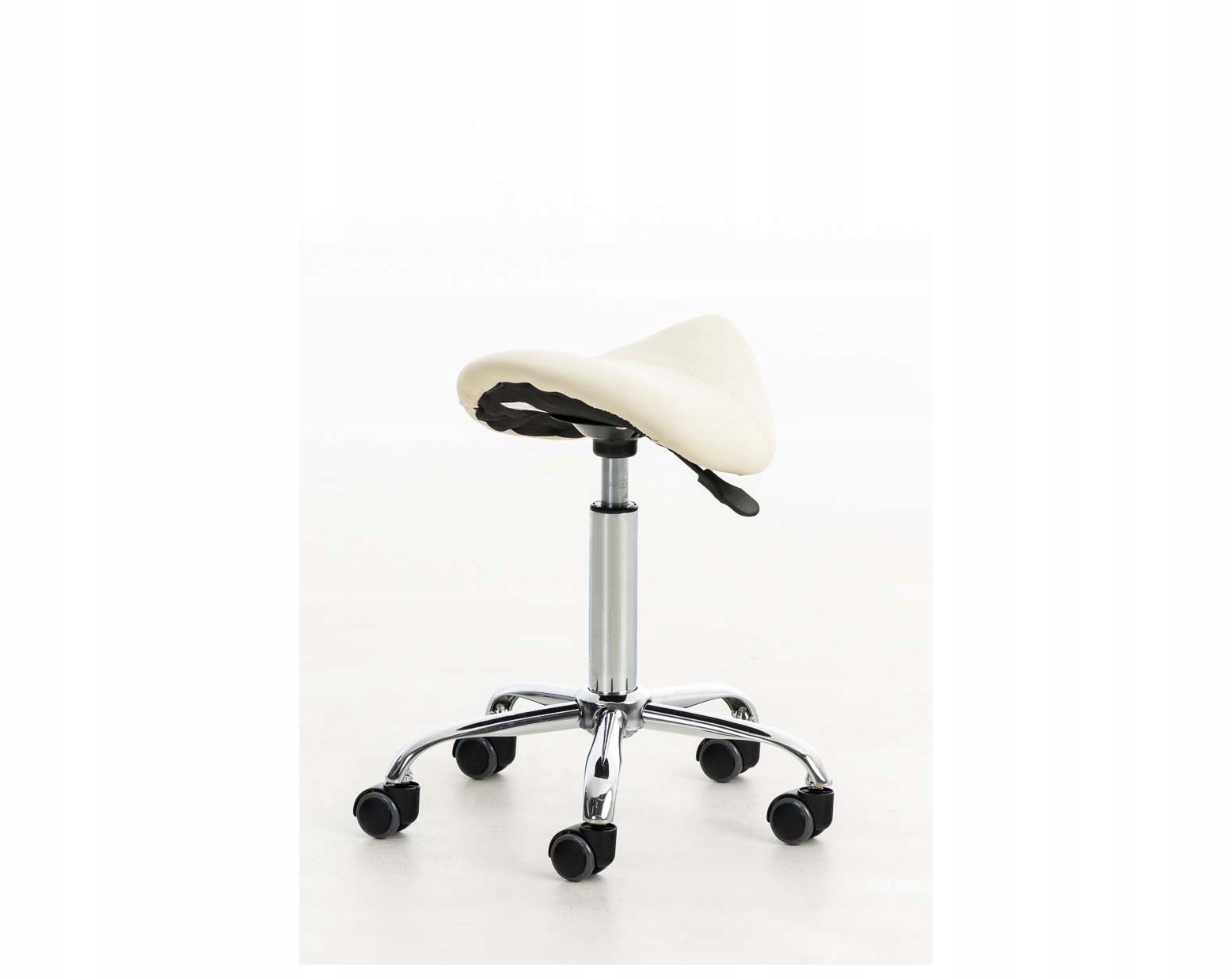 Табурет робочий RENO - це зручне сидіння, яке надає роботі новий комфортний вимір. Він ідеально підходить для медичних кабінетів, масажних і салонів краси - зручно сидячи на поворотному сідлі з індивідуальним регулюванням висоти сидіння, ви можете кататися по кімнаті і працювати більш гнучко. Цей табурет також є активом вдома, оскільки він підходить для щоденного використання. Поворотний табурет оснащений простою в догляді оббивкою з синтетичної шкіри з декоративною прострочкою. Стійка рама виготовлена з металу з хромованим покриттям і стоїть на 5 плавно обертових колесах, за допомогою яких ви завжди можете легко і вільно котитися по твердій або килимовій підлозі. Простий, стильний дизайн і міцні матеріали, які добре підійдуть у повсякденному житті, - продукт, який рекомендовано всіма.