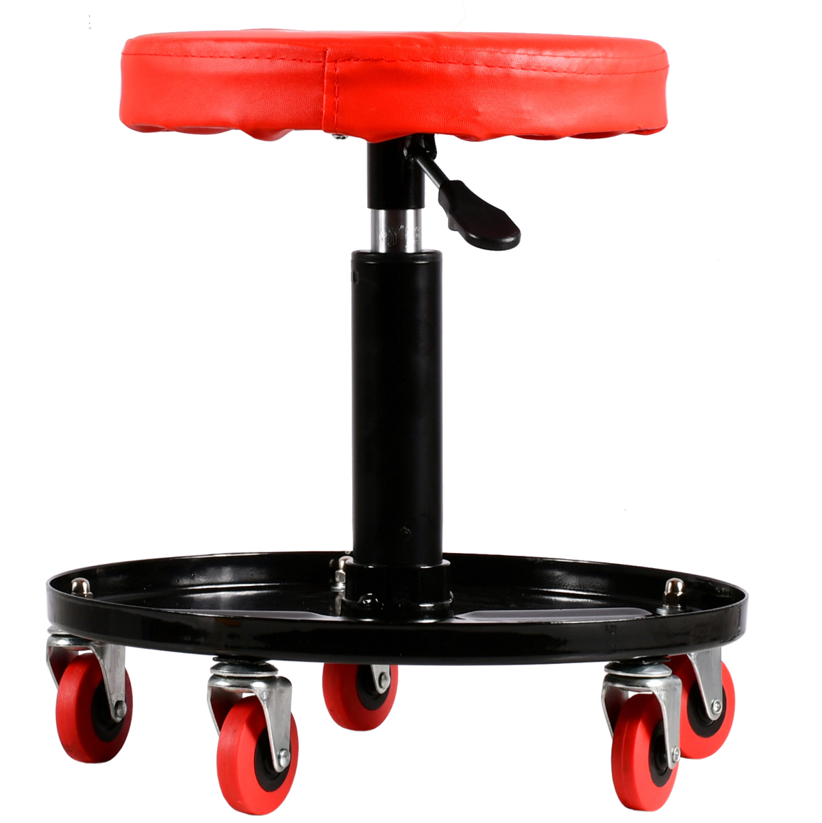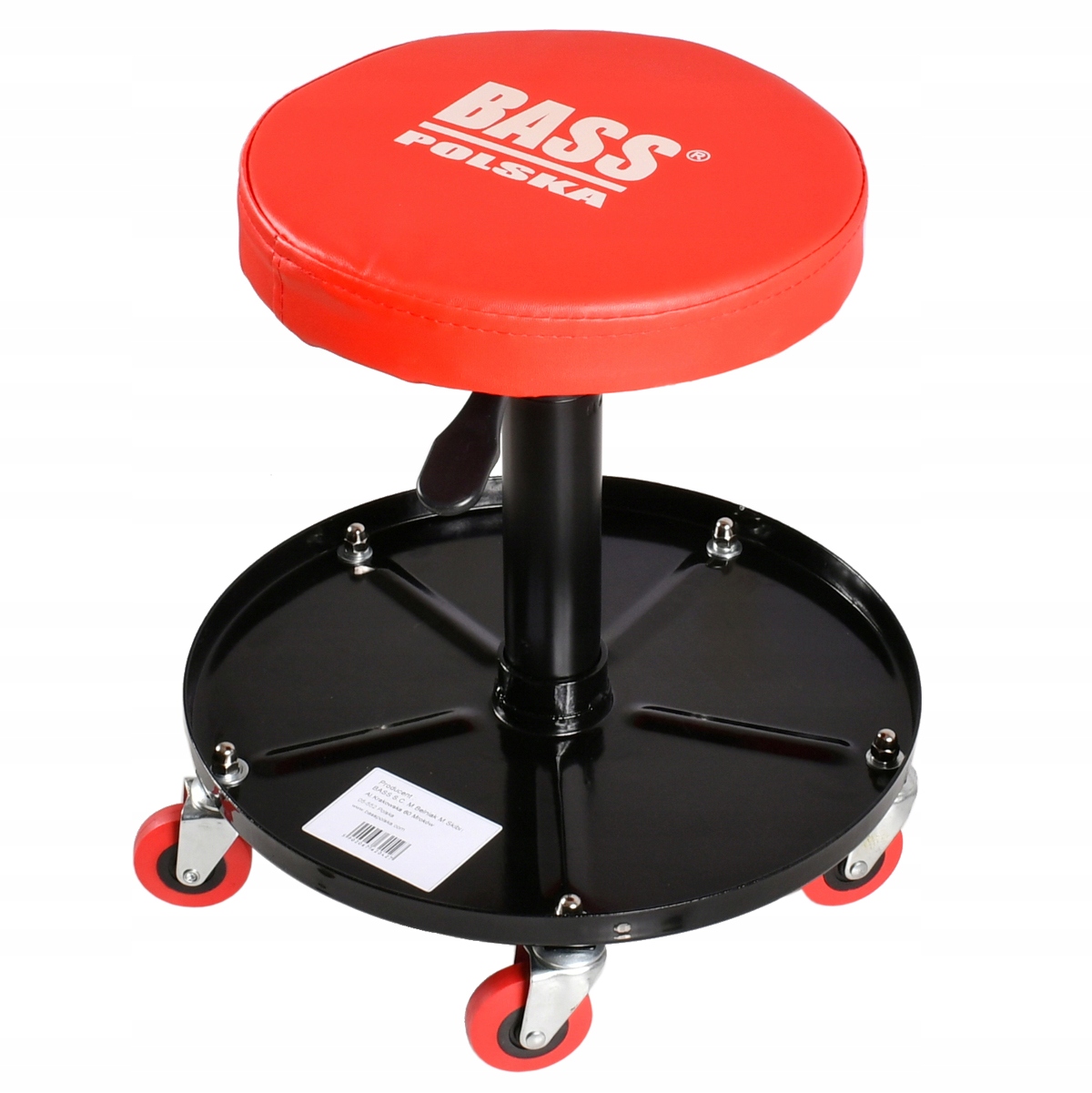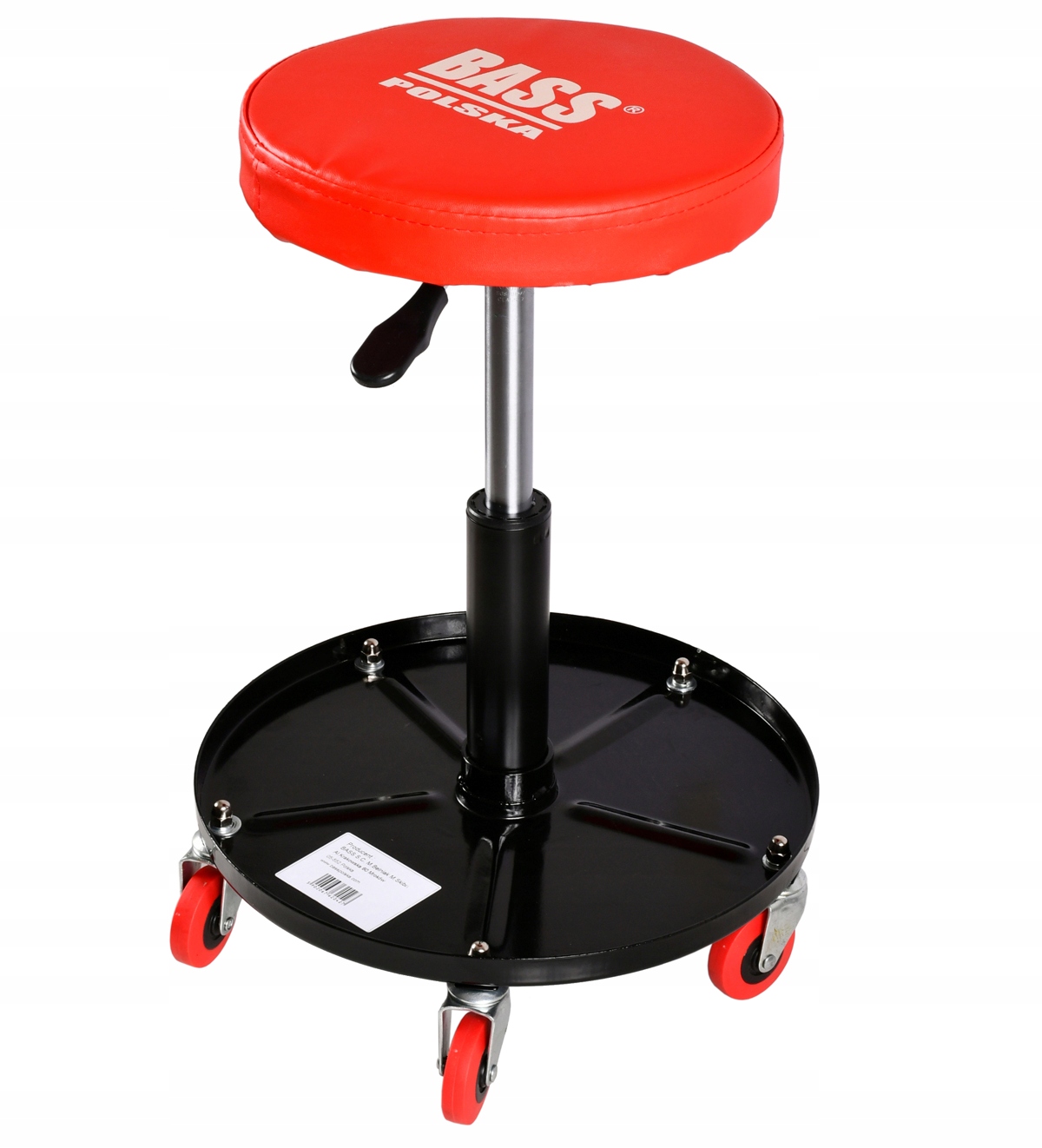 Сидіння з екошкіри з посиленою сталевою конструкцією, з п'ятьма колесами, що обертаються на 360°, що забезпечує свободу руху під час роботи в майстерні.