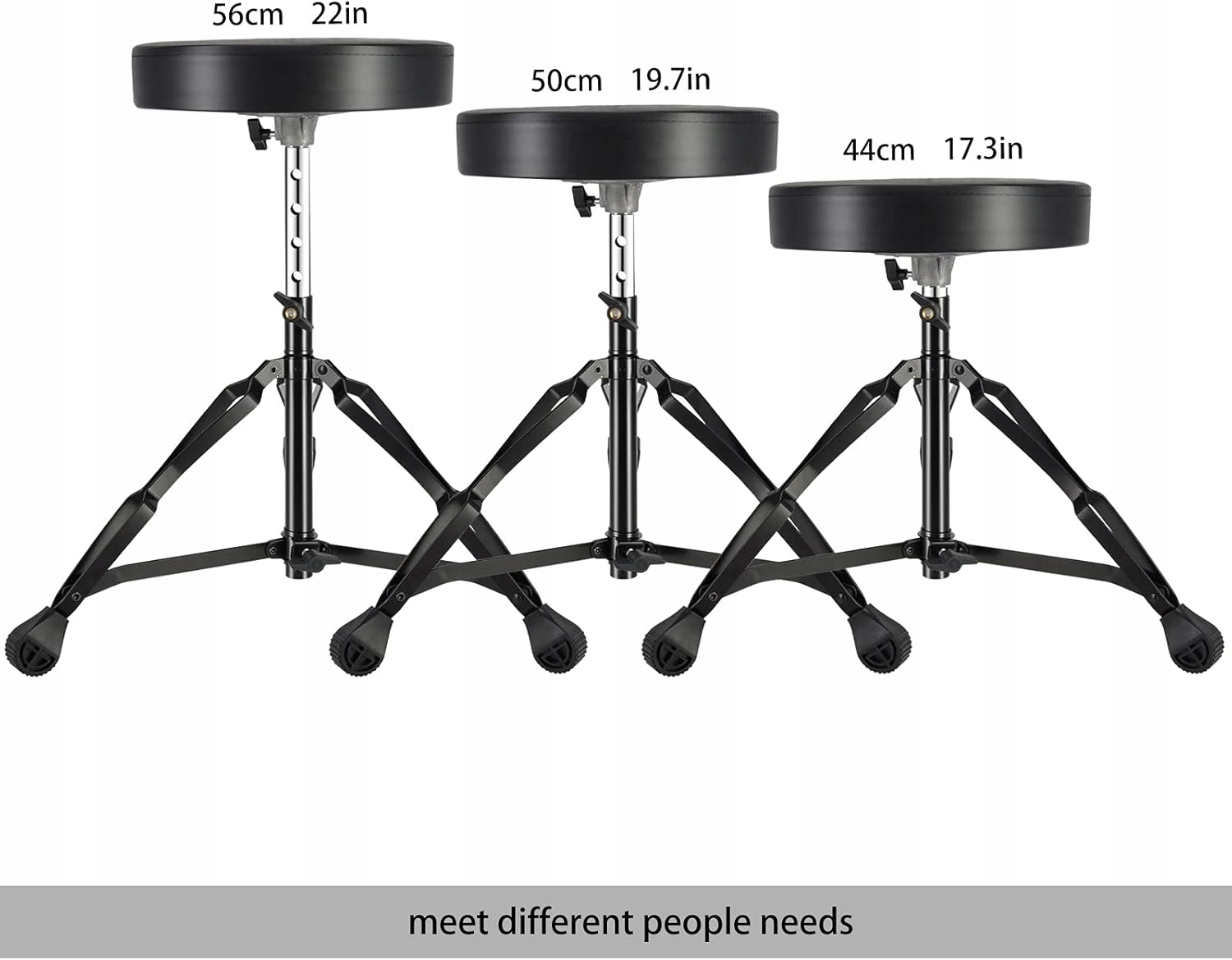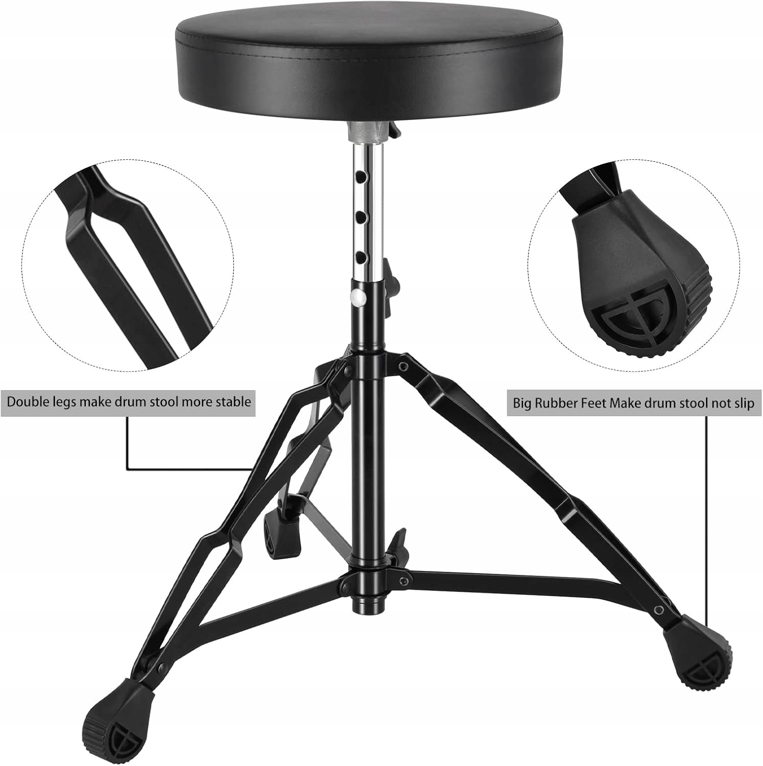 - Регульована висота: висоту цього табурета для барабанів можна регулювати від 41,5 см до 54,5 см, а відповідну висоту можна легко відрегулювати, відрегулювавши 5 отворів у ніжки табурета. Щоб забезпечити зручне положення для гри, барабанне сидіння EASTROCK можна використовувати з різними інструментами, а також підходить для різних типів сімейних зустрічей.
