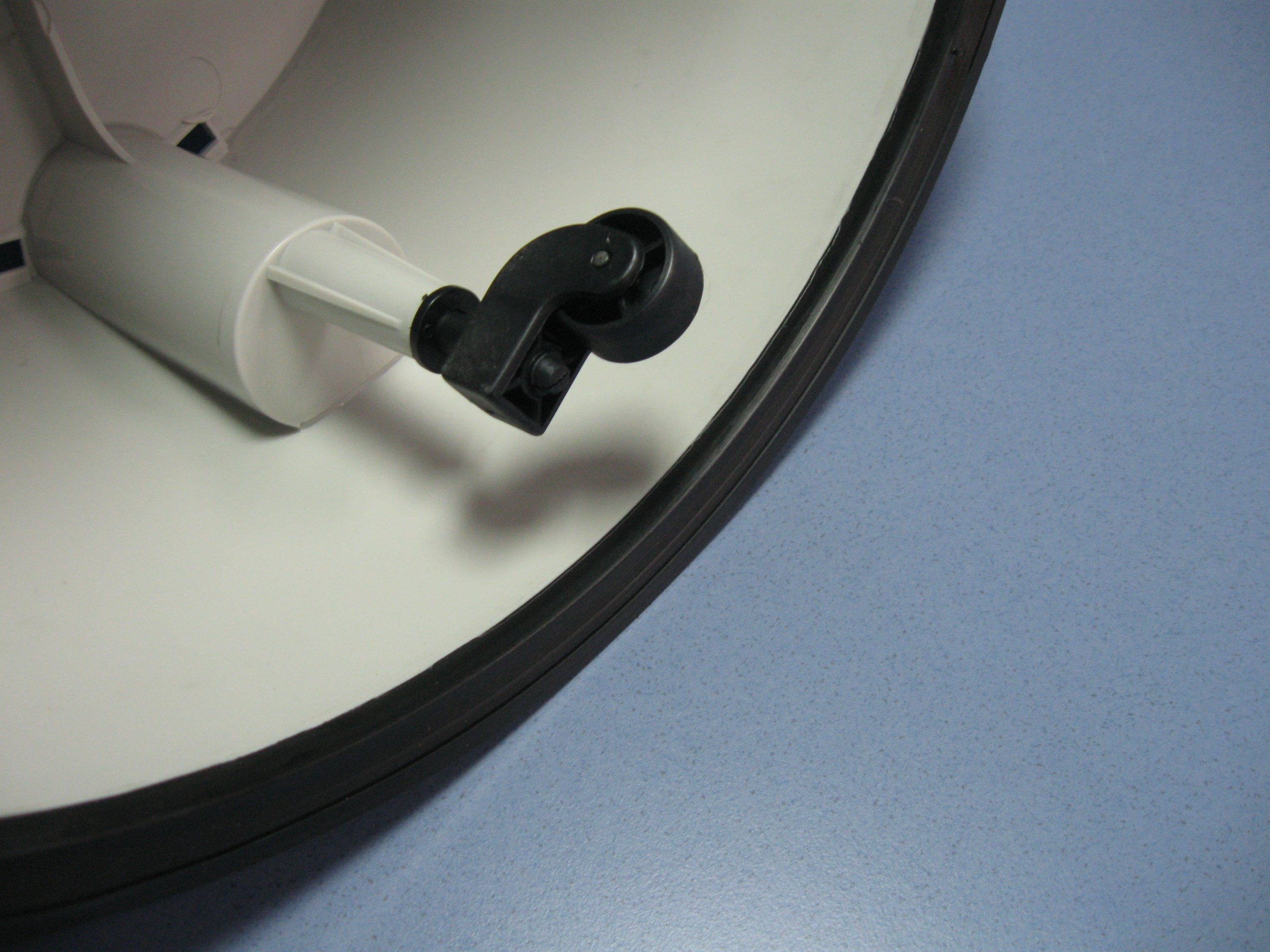 Основа рухомої сходинки має три колеса, що дозволяє переміщати її в будь-якому напрямку. Частково протиковзаюча гума також запобігає зсуву сходинки.