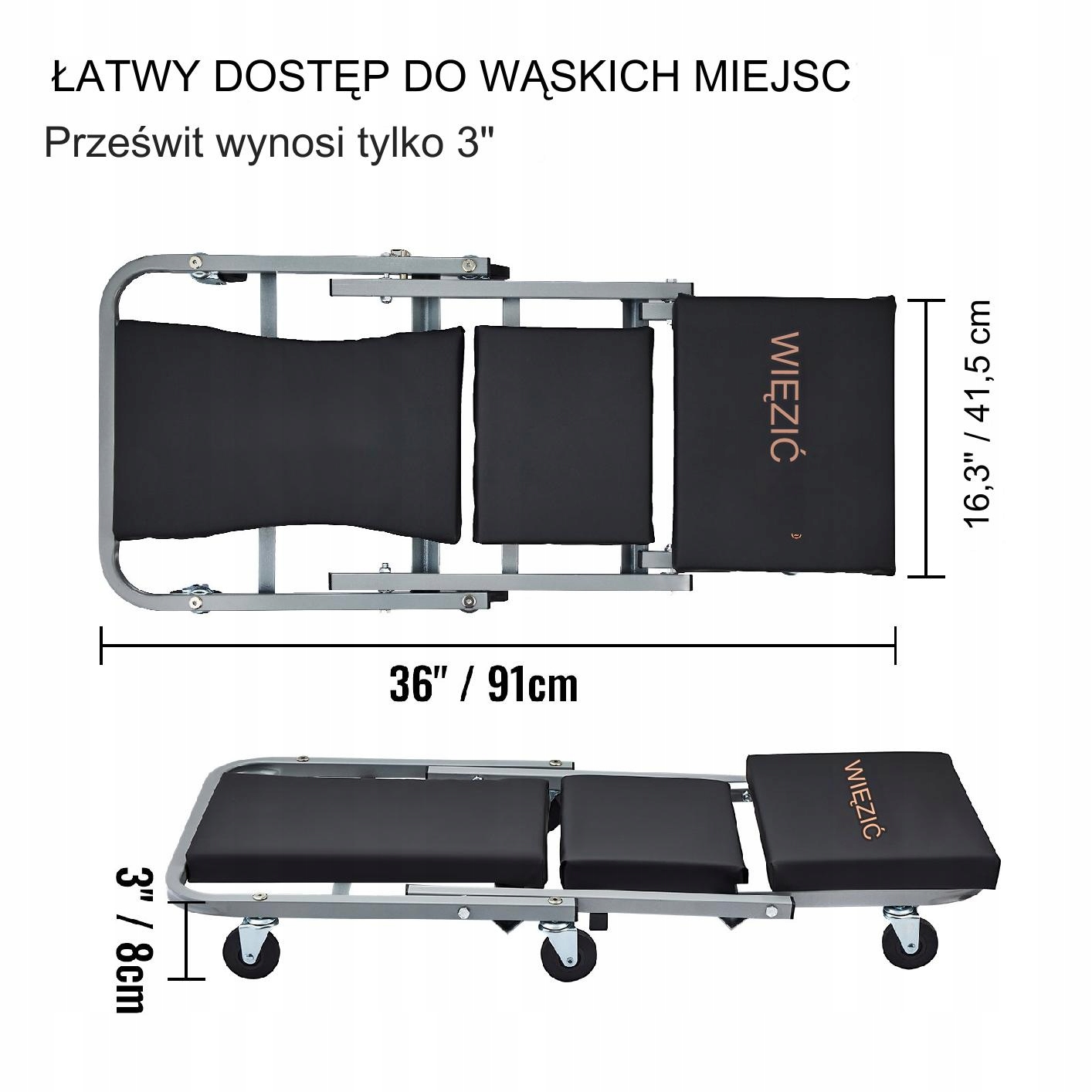 Лежак легко трансформується в табурет, що забезпечує комфорт під час ремонтних робіт. Ви можете легко залізти під транспортний засіб і зручно сидіти для роботи в низьких місцях, уникаючи нахилів. Це ідеальне рішення для людей, які піклуються про здоров'я своєї спини та зап'ясть.