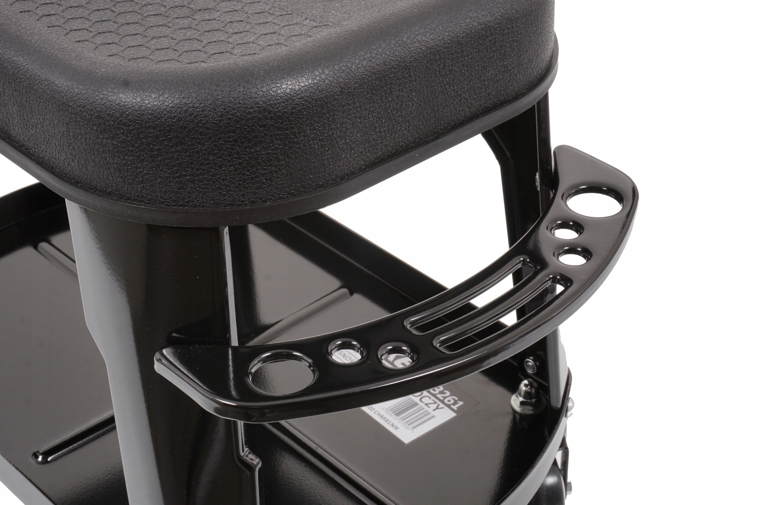 У нижній частині цього табурета ви знайдете чотири відділення для інструментів – туди можна покласти гайкові ключі, подовжувачі, розетки тощо.
