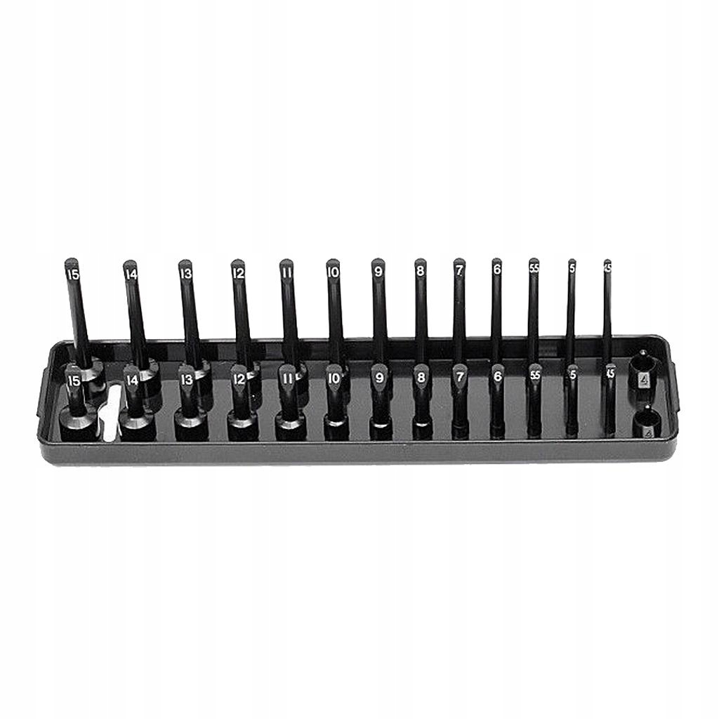 3/8 драйву Метрик: 20, 19, 18, 17, 16, 15, 14, 13, 12, 11, 10, 9, 8, 6 ммSAE Deep & Standard: 1, 15/16, 7/8, 13/16, 3/4, 11/16, 5/8, 9/16, 1/2, 1/2, 1/2, 1/2, 1/2, 1/2, 7/16, 3/2/2, 1/2, 1/2, 7/16, 3/2/2 1/4 в