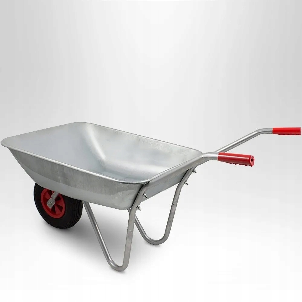 Тачка оцинкована з рельєфною чашею із закругленими краями, об'ємом заповнення 80 л і об'ємом заповнення 120 л, що забезпечує тривалий термін служби. Це забезпечує безпечне транспортування ґрунту чи інших матеріалів.