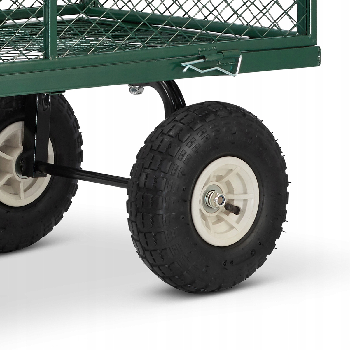 Накачані колеса дозволяють регулювати тиск відповідно до ваги вантажу, що транспортується, і поверхні. Конструкція коліс заснована на ободах з оцинкованої сталі (стійкі до корозії). Колеса додатково посилені внутрішніми гвинтами, що підвищує їх довговічність.