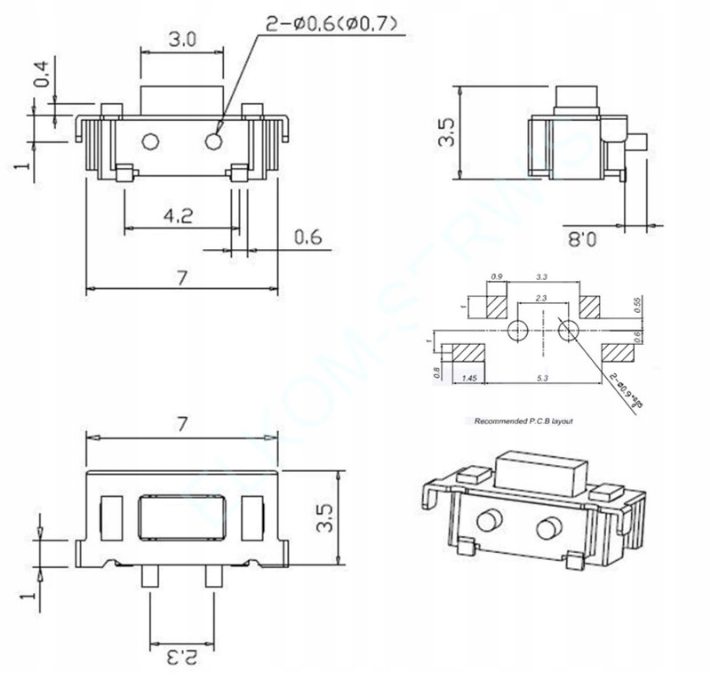 - SMD мікрокнопка ширина х довжина 4x7 мм 2-PIN