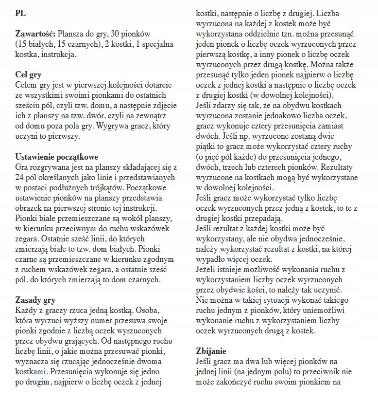 У кожного гравця є 15 фігур, які він переміщує на дошці, що складається з 24 полів (трикутників), відповідно до кількості очок, викинутих на двох кубиках.
