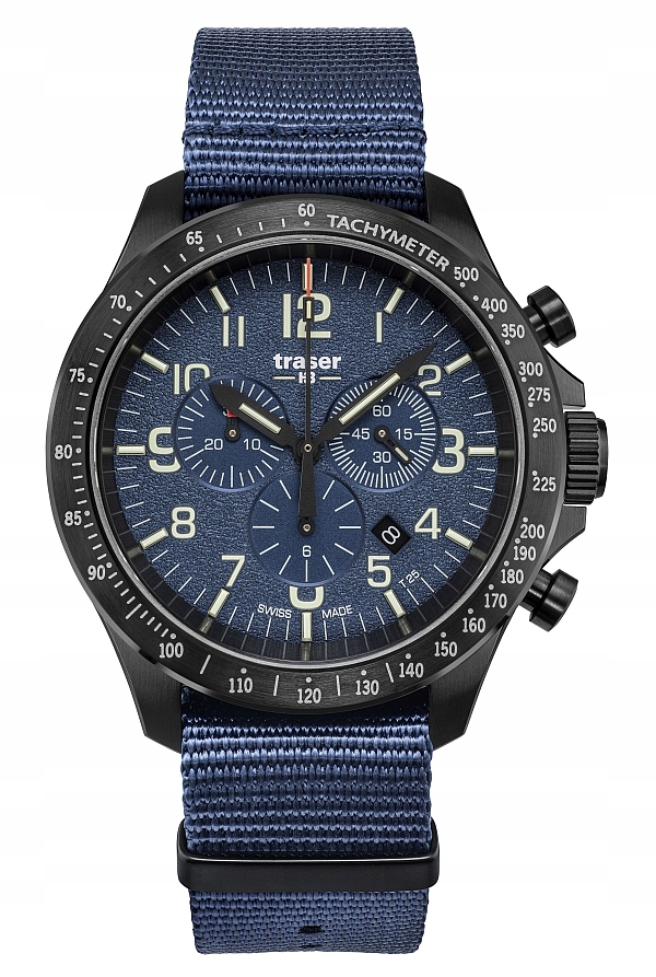 Циферблат має відображення дати та секундомір із відліком до 12 годин. Варто додати, що трубки зі світним тритієм розміщені на стрілках і покажчиках. На безелі годинника є шкала тахіметра, що дозволяє зчитувати середню швидкість. Все закривається міцним нейлоновим ремінцем НАТО типу, стійким до зовнішніх факторів.