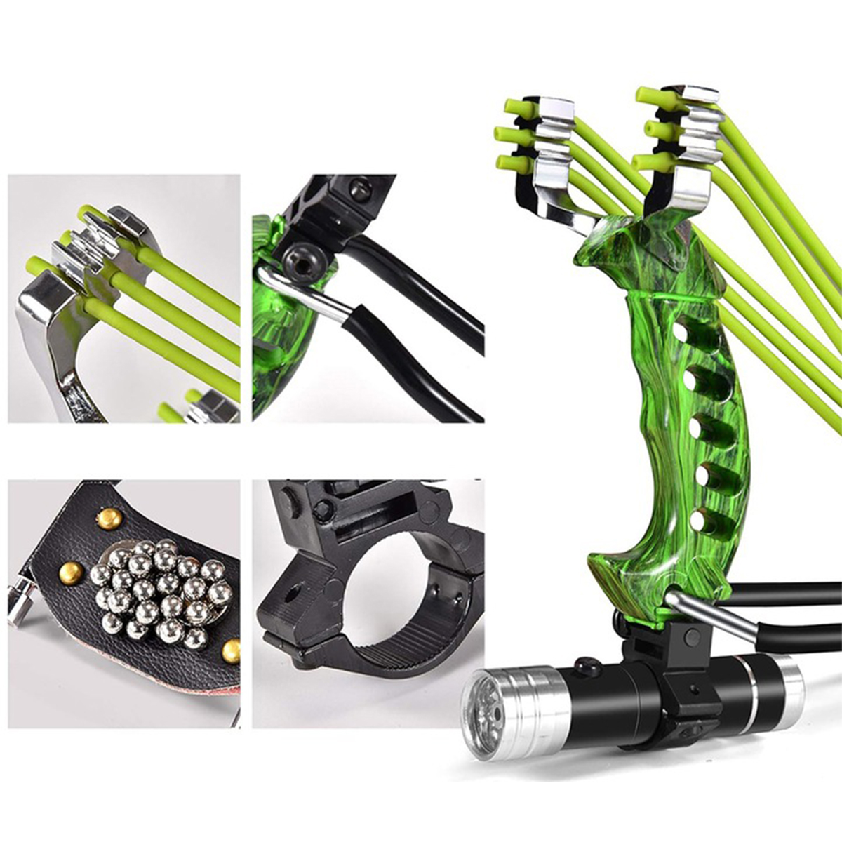 Покращені гумки покращують потужність стрільби та відстань. Крім того, тактична рогатка особливо точна завдяки своїй міцній і зручній ручці, що робить її ефективним інструментом для ваших цілей. Крім того, 3-смугова конфігурація забезпечує справді плавний старт