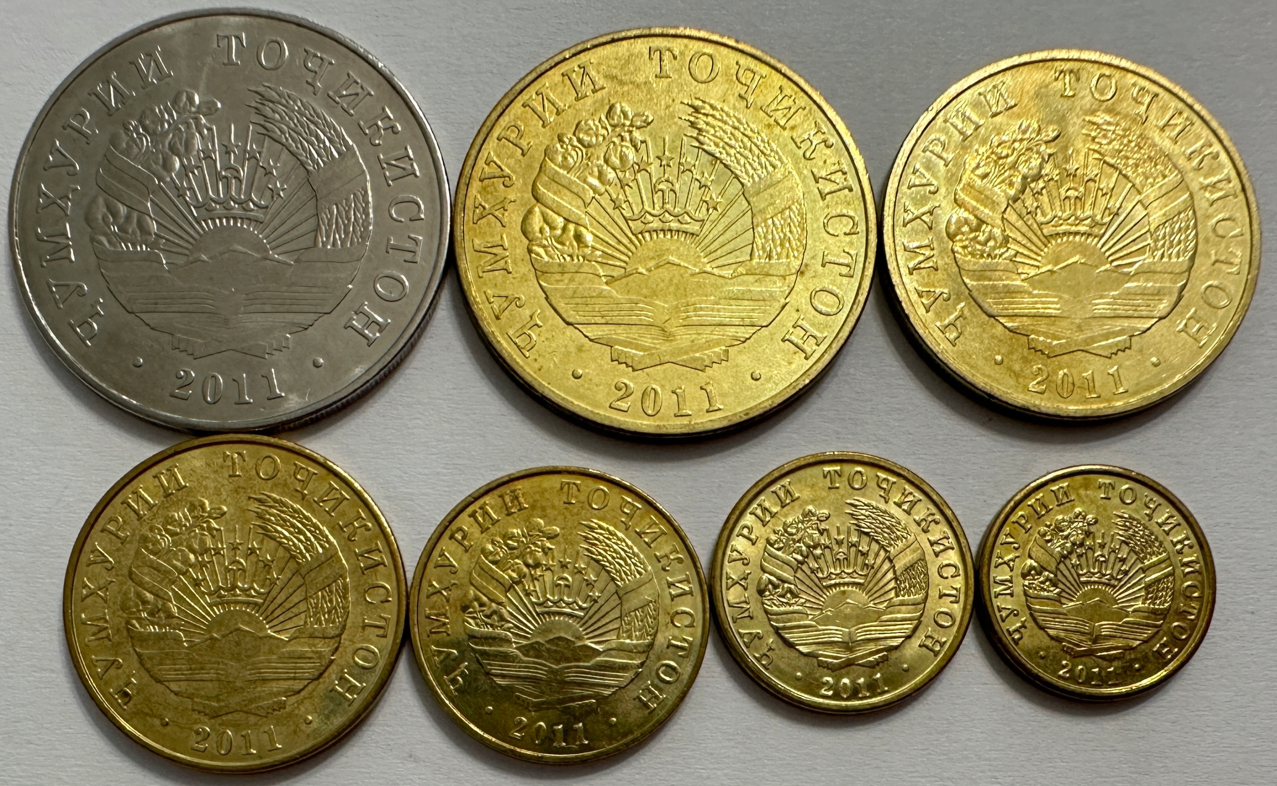 ТАДЖИКИСТАН 2011 Набір із 7 обігових монет, штати монетного двору, КРАСИВІ