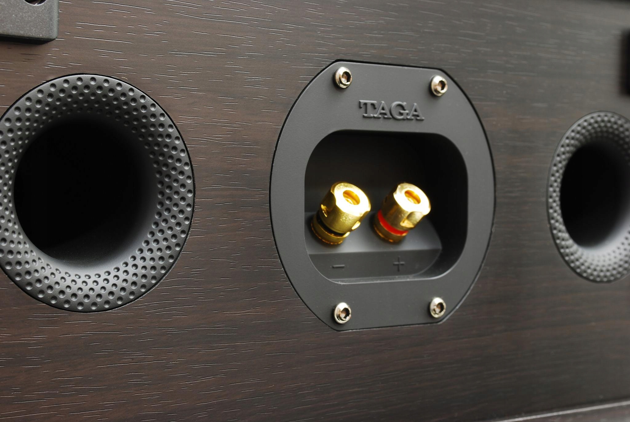 Taga-Harmony Azure C-40 v2 використовує декоративні кільця всіх динаміків разом із передньою панеллю для кращого розсіювання звуку від окремих перетворювачів.