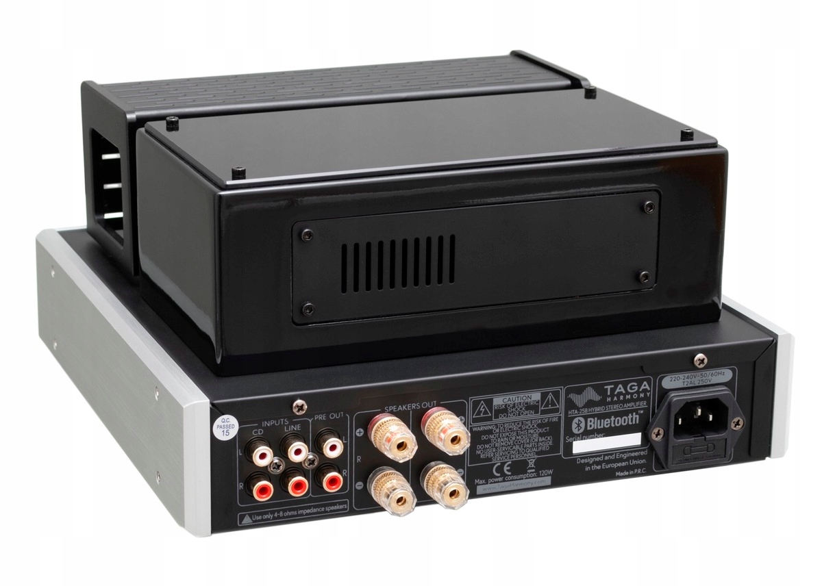 У підсилювачах TAGA Harmony використовуються лампи в секції попереднього підсилювача та транзистори в секції підсилювача потужності. Це дозволяє отримати ламповий, м’який та аналоговий характер звуку та водночас гарантувати високу динаміку та потужність, яку забезпечують транзистори, що зазвичай є слабким місцем суто лампових конструкцій.