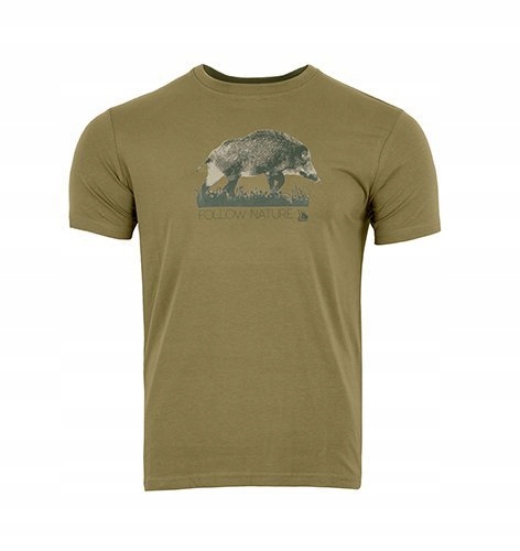 Зручна бавовняна футболка з домішкою еластану, яка забезпечує розтягнення в усіх напрямках, забезпечуючи оптимальну посадку без тиску, комфорт і максимальну свободу рухів. Принт з лісовим мотивом - кабан.