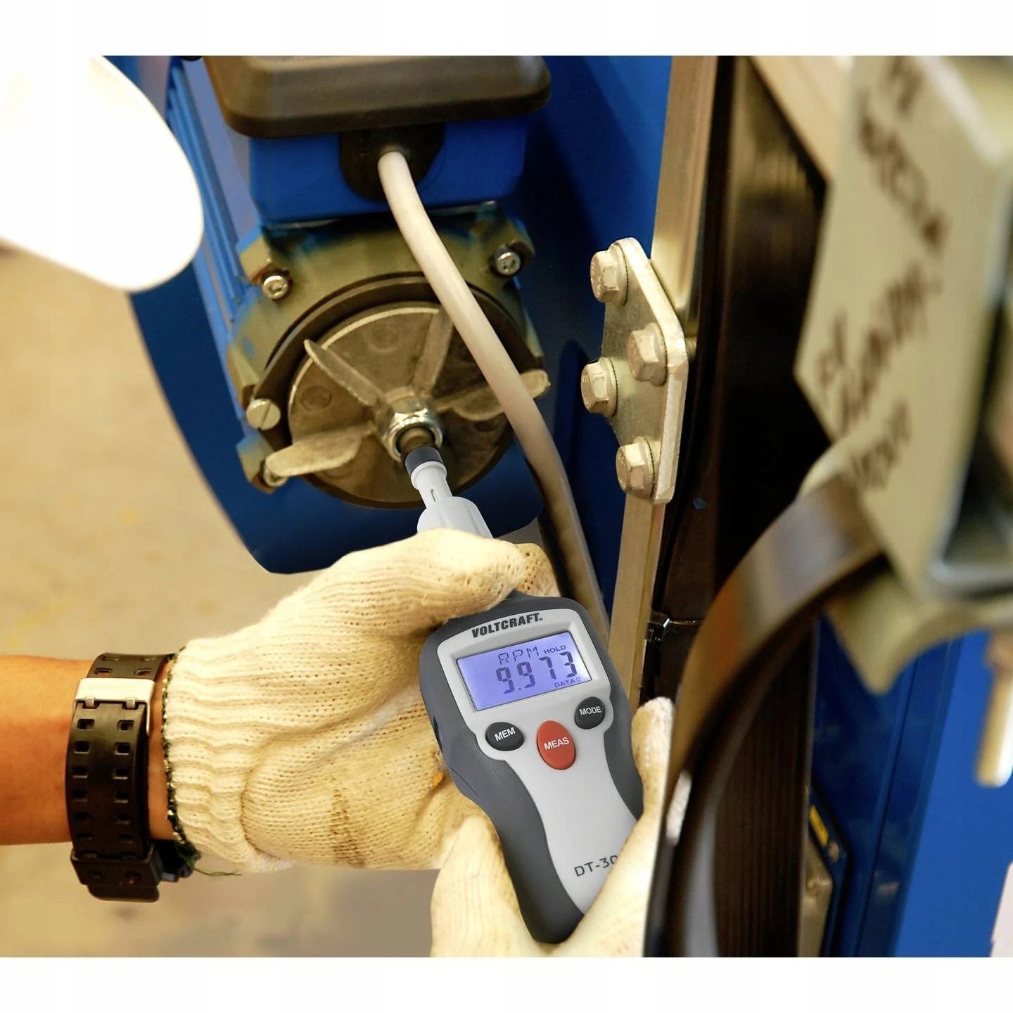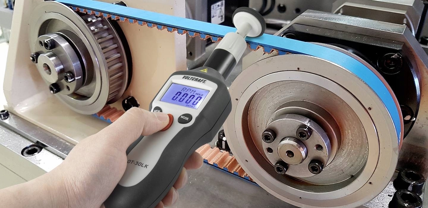Лічильник обертів, контактний і безконтактний метод. Лазер дозволяє точно і безконтактно вимірювати обертові частини навіть при денному світлі. Відображення виконується цифровим способом на РК-дисплеї.