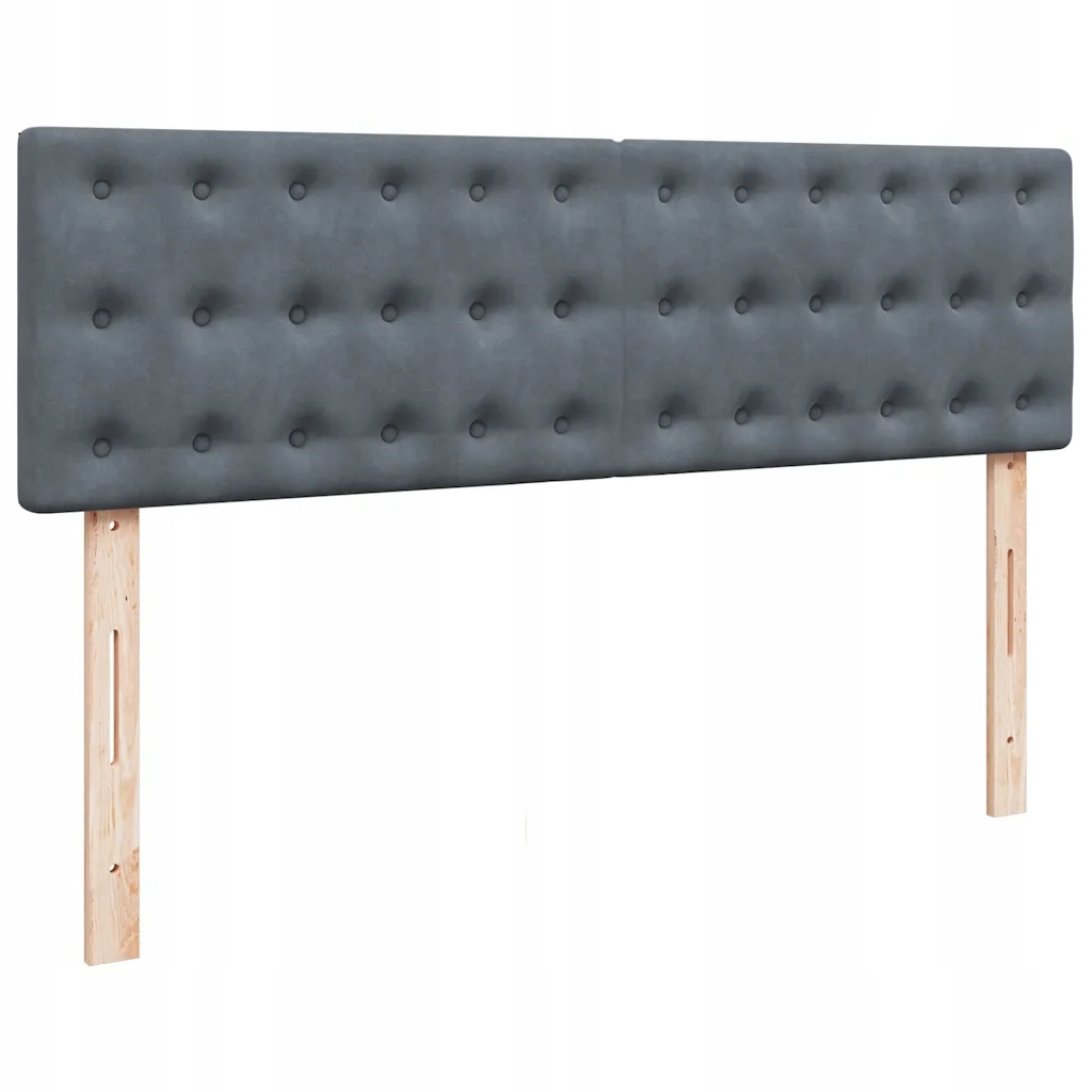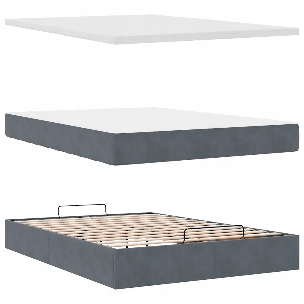 - Каркас ліжка з темно-сірим узголів’ям, виготовлений з оксамитового матеріалу (100% поліестер), металу та матеріалів на основі деревини матеріали.