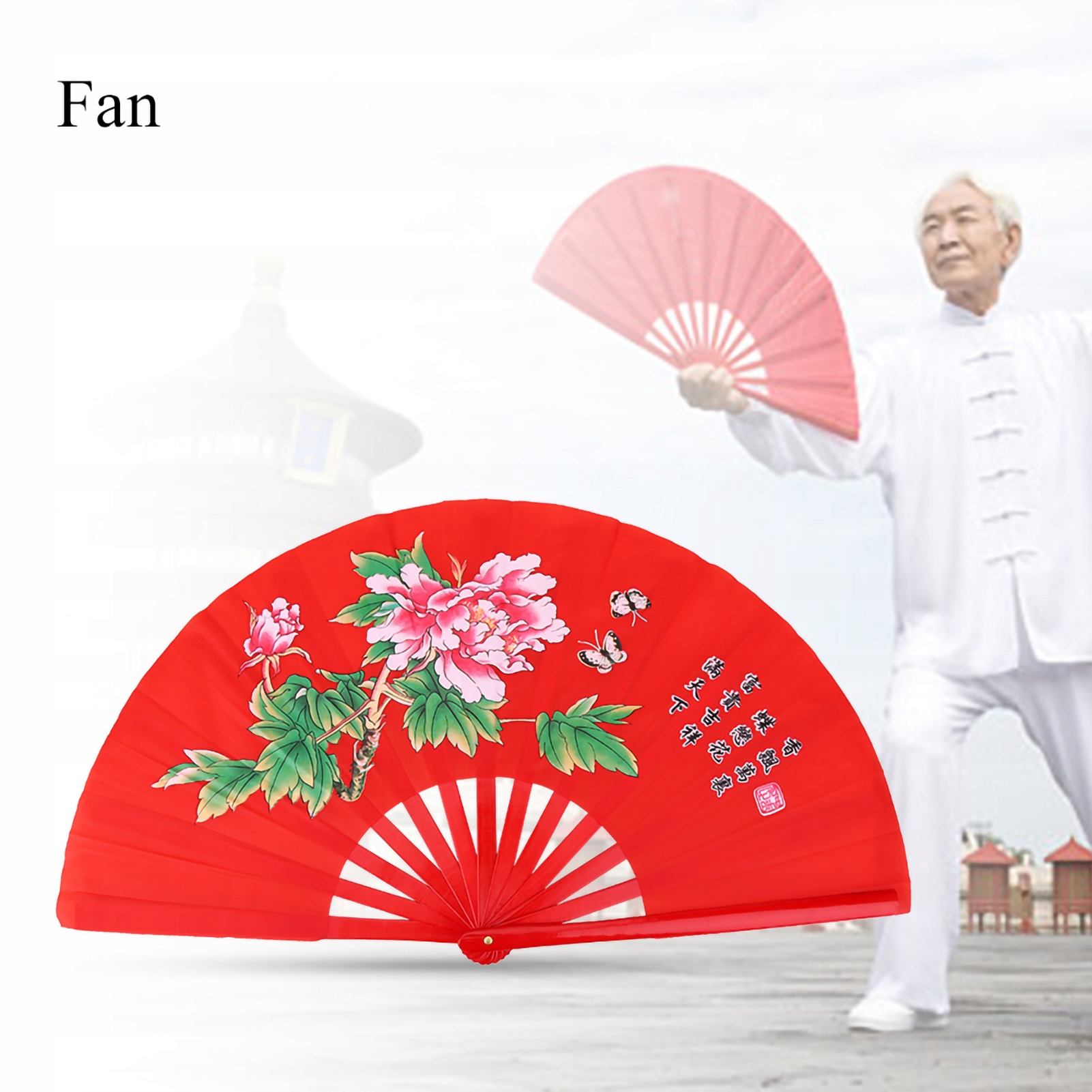 Бойові мистецтва Тай Чі Кунг-Фу Бамбукове шовкове віяло Права рука Ушу Практичні танцювальні тренування (червоний)