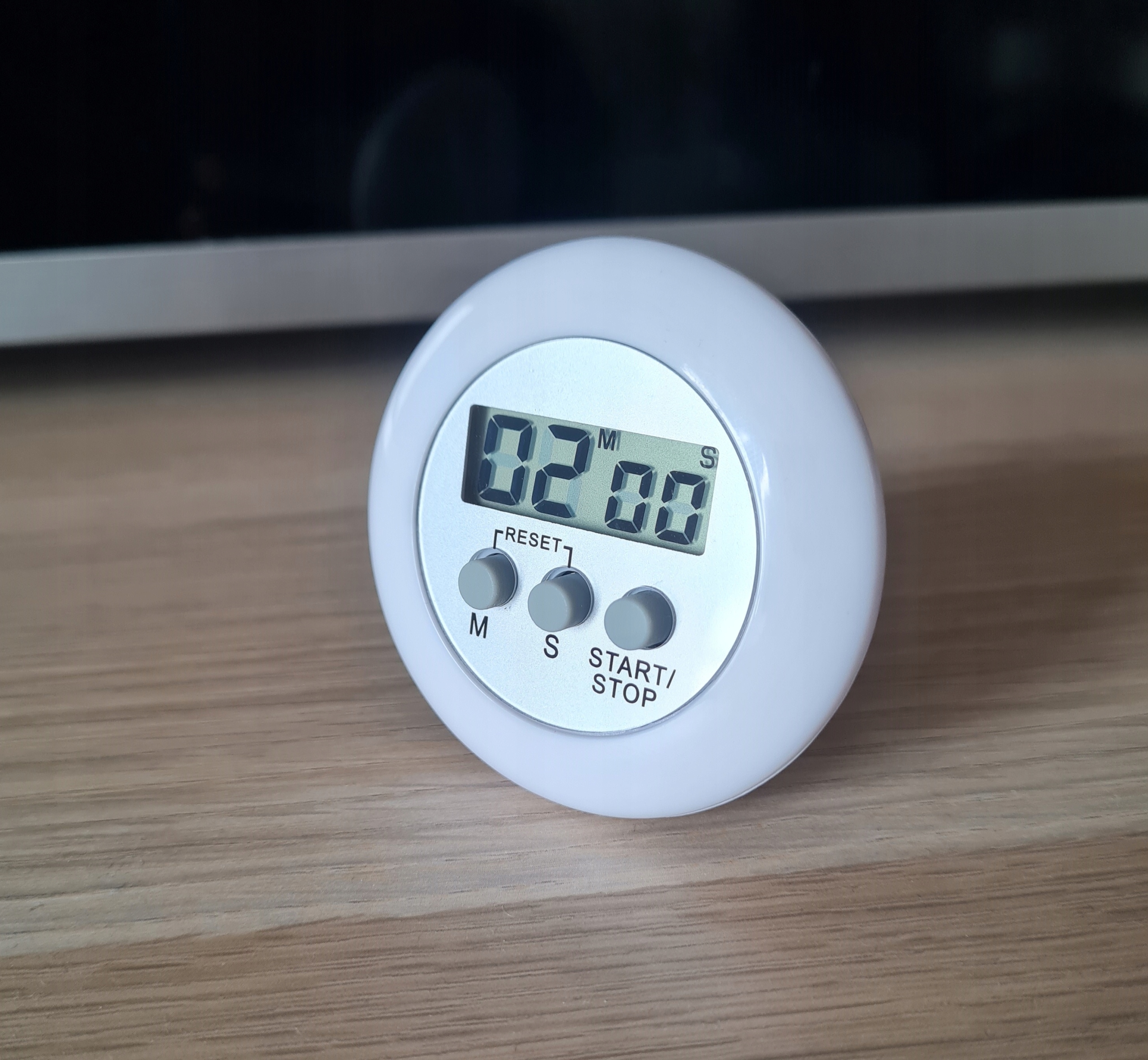 Електронний таймер із РК-дисплеєм чудово працюватиме на будь-якій кухні. Він оснащений затискачем, який дозволяє легко прикріпити його будь-де, його можна поставити на стіл.
