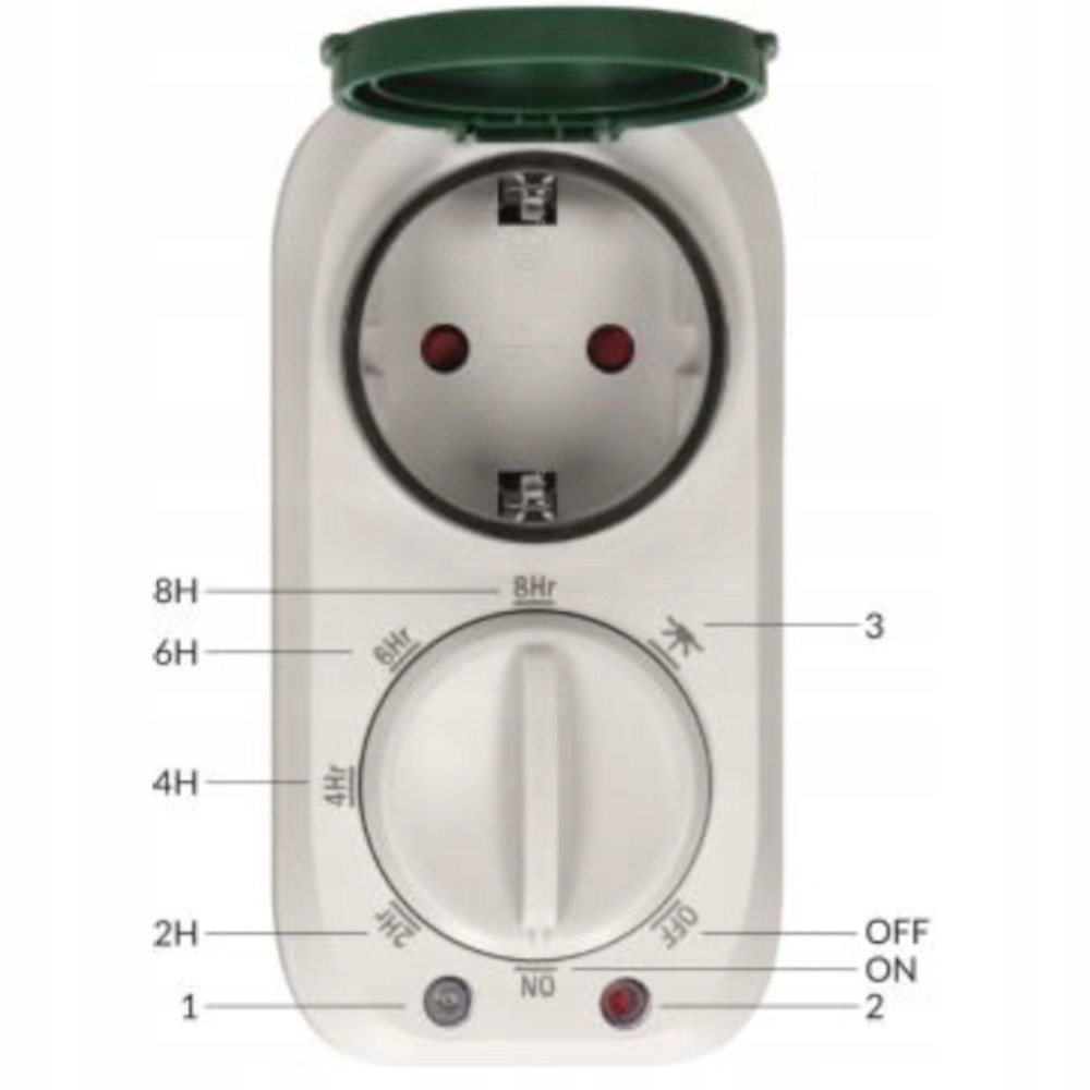 8H - живлення в розетці вмикається в сутінках на 8 годин
