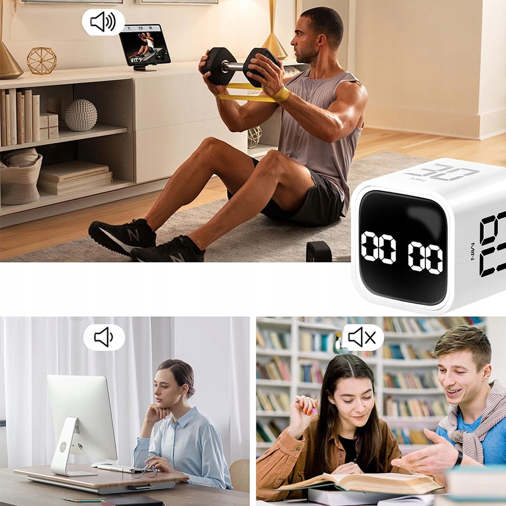 - ✔️ З трьома режимами нагадування (тиха/вібрація, низька гучність 70-80 дБ, висока гучність 90-100 дБ). Поверніть дисплей вгору, і таймер призупиниться. Поверніть дисплей вниз, і таймер буде скинуто до нуля.