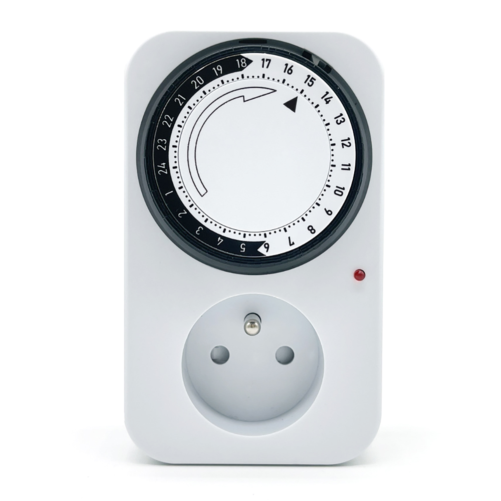 Проста у використанні розетка живлення з ручним програматором і аналоговим диском дозволяє запланувати ввімкнення та вимкнення живлення. Продукт може допомогти вам більш розумно управляти електроенергією вдома, приносячи таким чином відчутну фінансову вигоду. Один цикл триває 24 години, а мінімальний час схоплювання – 30 хвилин.