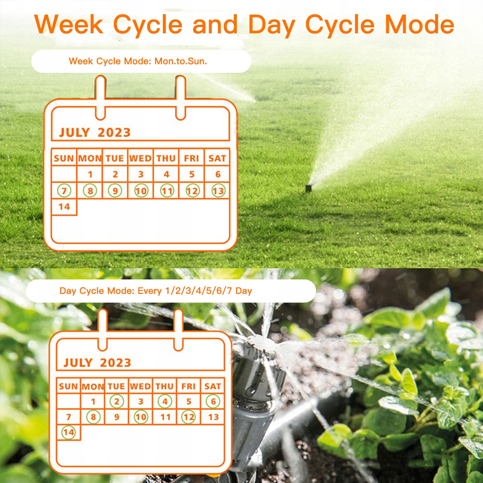 Функція: 1. [Простий у використанні] Цей годинник зрошення постачається з двома різьбовими шлангами 0,5 -дюймів та 2 різьбовими стрічковими стрічками PTFE. Після регулювання автоматичного розкладу зрошення просто підключіть годинник до зовнішнього 3/4 дюймового крана та запустіть інтелектуальну садову систему з змією. [2 незалежні виходи] Кожен вихід діє як окремий годинник зрошення, що дозволяє до 6 різних часів зрошення. Двозонний годинник полегшує програмування різних потреб з різними налаштуваннями за один і той же день. [Автоматичне зрошення] При дотику кнопки ви можете встановити годинник, час початку, тривалість зрошення, частоту зрошення, автоматичний режим та режим комутації. Тривалість поливу може становити від 1 хвилини до 5 годин 59 хвилин, а частоту поливу можна встановити від 1 до 7 днів або кожні 1 - 7 днів. Це дозволяє проводити гнучкий час зрошення для 2 зон. [Довготермінне використання] Цей контролер зрошення виготовлений з твердої водонепроникної покриття IP55 та довговічного пластику ABS. Акумуляторна камера оснащена інтегрованим ущільнювальним ременем, який ефективно запобігає потраплянню води. Підтримує батареї 4XAA (не включені) і можуть тривати до 1 року. [Затримка дощу та ручне зрошення] Наш контролер має режим дощової затримки, що дозволяє призупинити зрошення до 1 - 7 днів залежно від місцевої погоди. Ви можете поливати рослини протягом 1 хвилини до 8 годин, не перериваючи графік, адаптуючись до ручного режиму. Таймер Sprinkler 2-Zone Water Switch