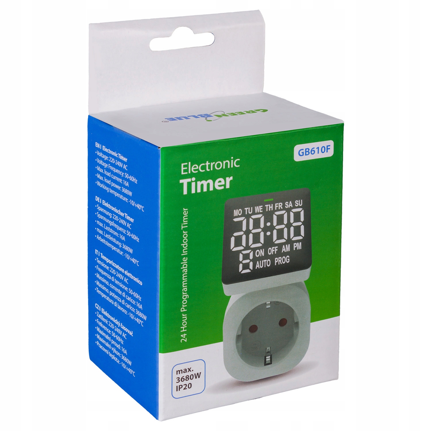 перемикач часу - цифровий таймер GreenBlue, макс. Завантажити 16A, IP20, GB610 F