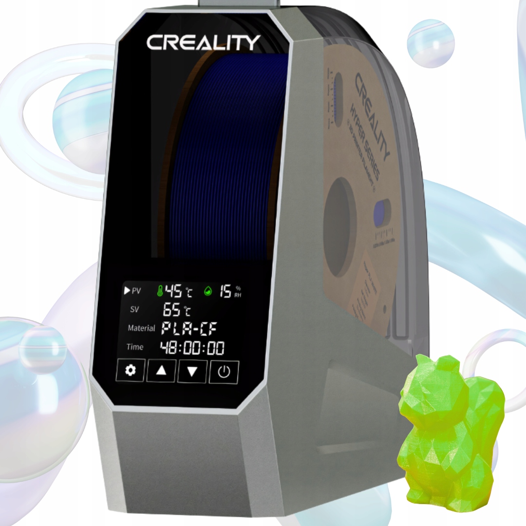 Pileamment Shater Creality Space PI - це вдосконалений пристрій, призначений для сушіння ниток перед 3D -друком. Завдяки регульованій температурі в діапазоні від 45 ° С до 70 ° С та таймеру до 48 годин, це дозволяє ефективно видалити вологу з різних типів матеріалів, таких як PETG, TPU, ABS або Nylon.