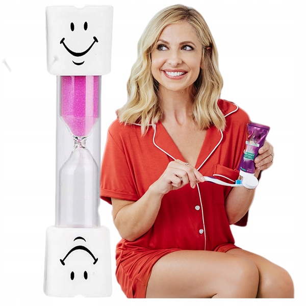 У пісочних годинниках білий зуб із веселим усміхненим обличчям з обох боків. Його наповнюють кольоровим піском, а заливка займає близько 3 хвилин, чого достатньо для ідеально чистих зубів і здорової, сяючої посмішки. Звичайно, пісочними годинниками можуть користуватися й дорослі.