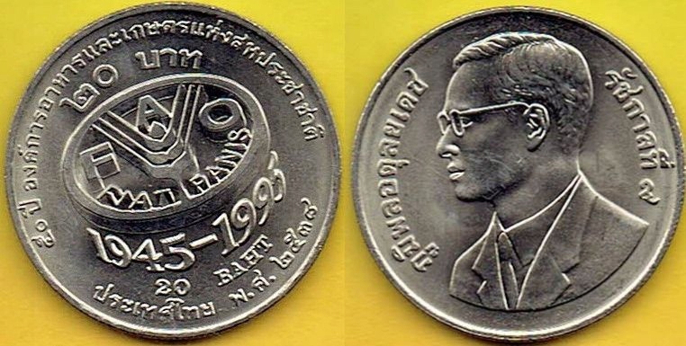 ТАЙЛАНД 20 бат ФАО 1995 року - монета зі сканування для колекції - будь ласка