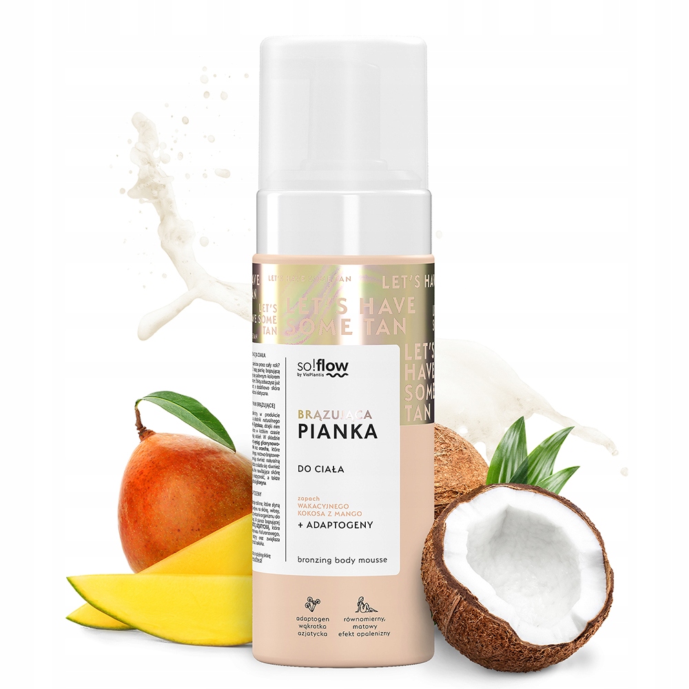 Формула піни збагачена азіатським голодом, адаптогеном, що відновлює природний баланс тіла та розуму. Азіатський голод підтримує процеси загоєння шкіри, зміцнює його захисний бар'єр і стимулює вироблення гіалуронової кислоти, колагену та еластину, що значно покращує гідратацію шкіри та еластичність. Завдяки цьому шкіра не тільки засмагла, але й живиться і зміцнюється. Крім того, піна має прекрасний запах кокосового горіха, який вводить у святковий настрій.