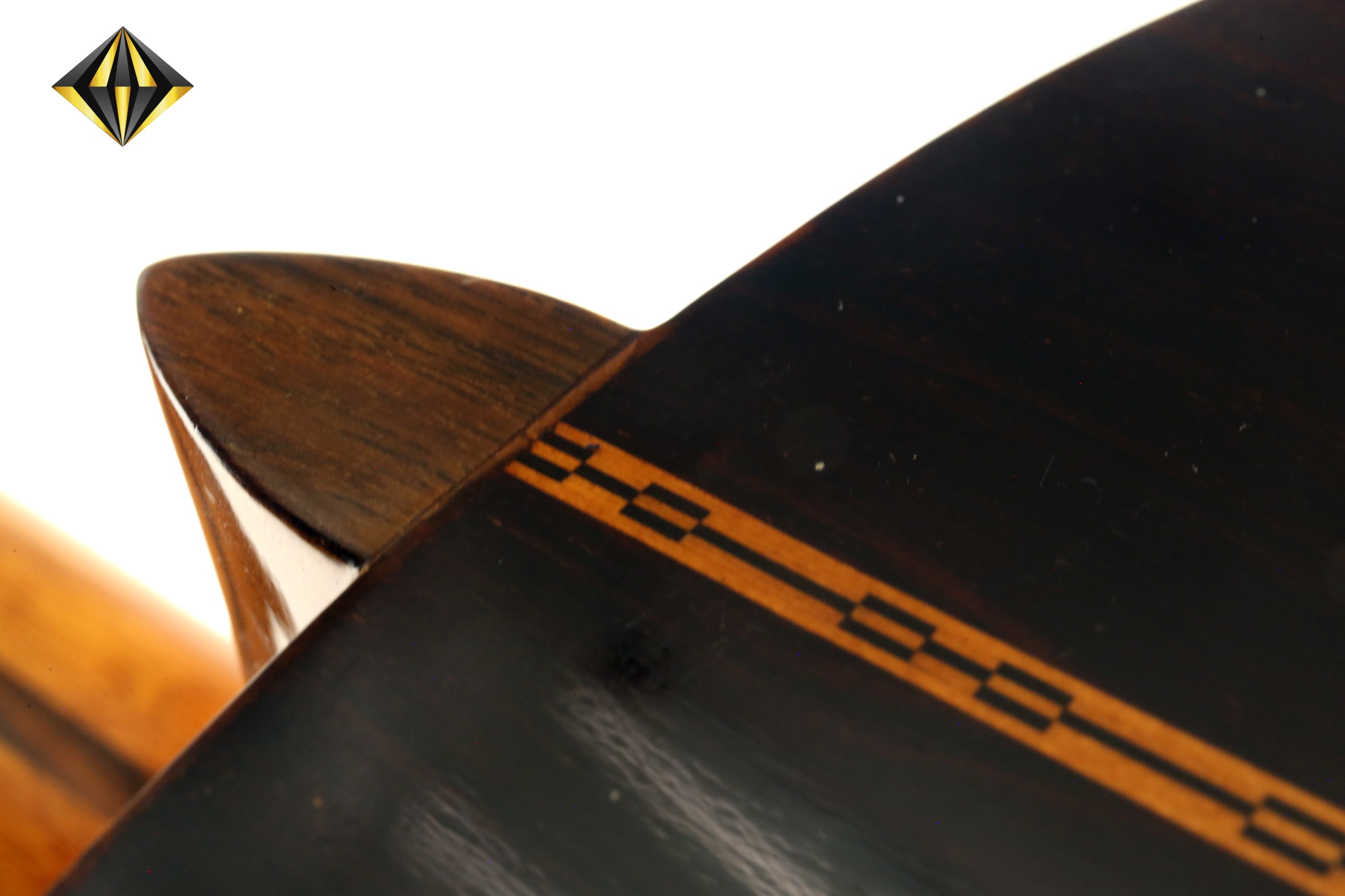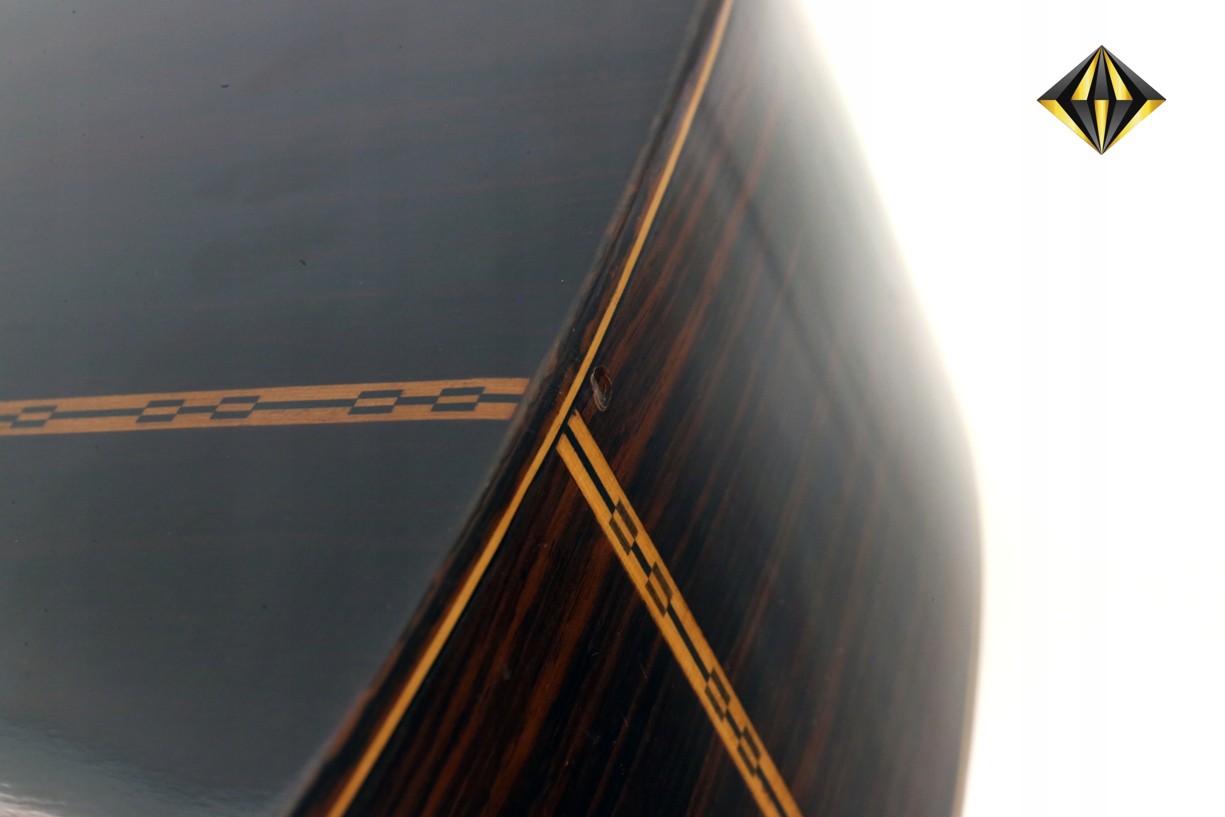 - Матеріали: верх - ялина (масив смереки), тильна сторона - палісандр (масив палісандра), гриф - червоне дерево, гриф і бридж - палісандр.
