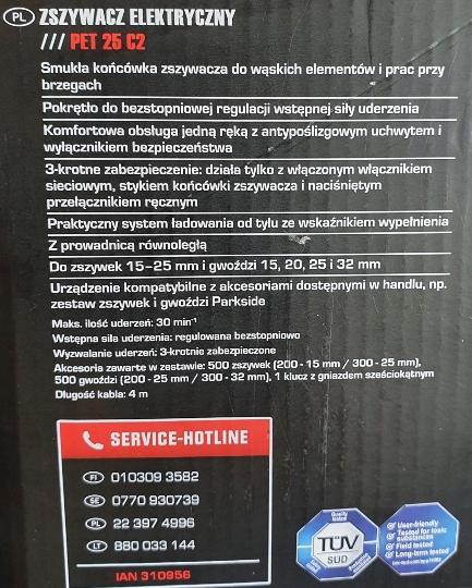 Приобретая «ТАКЕР СТЕПЛЕР ЭЛЕКТРИЧЕСКИЙ ГВОЗДЕЛЬ PARKSIDE» данный товар из каталога «Степлеры» вы можете быть уверены, что после оформления заказа, доставки в Украину, вы получите именно то, что заказывали, в оговоренные сроки и европейского качества.