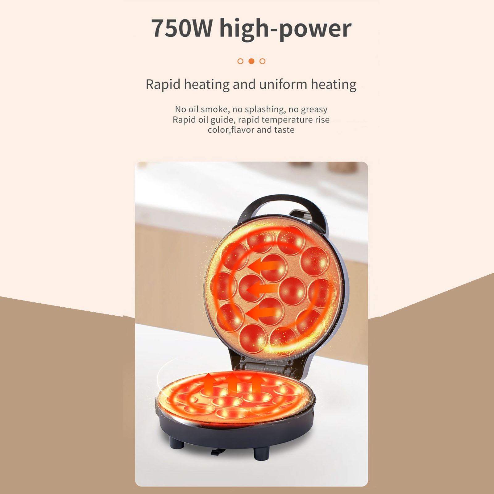 2. Потужне нагрівання потужністю 750 Вт: завдяки потужному двигуну потужністю 750 Вт ця електрична машина для приготування такоякі забезпечує ефективне нагрівання, щоб ви могли швидко приготувати смачний сніданок.