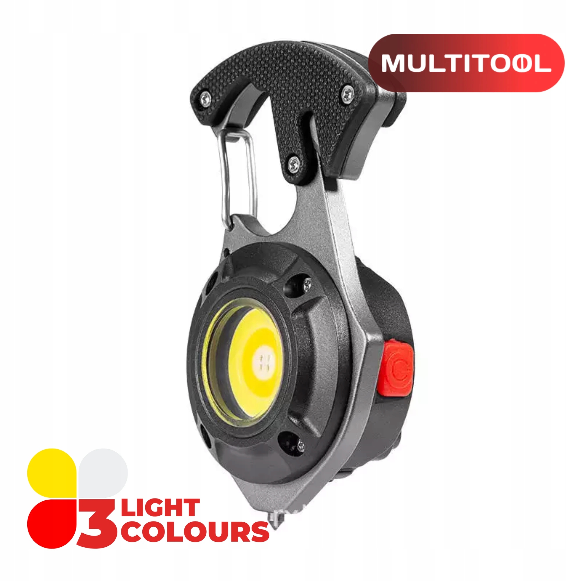 Режими освітлення: інтенсивний білий, слабкий білий, яскравий жовтий, слабкий жовтий, червоний, миготливий червоний. Довге натискання кнопки активує додаткове світло.