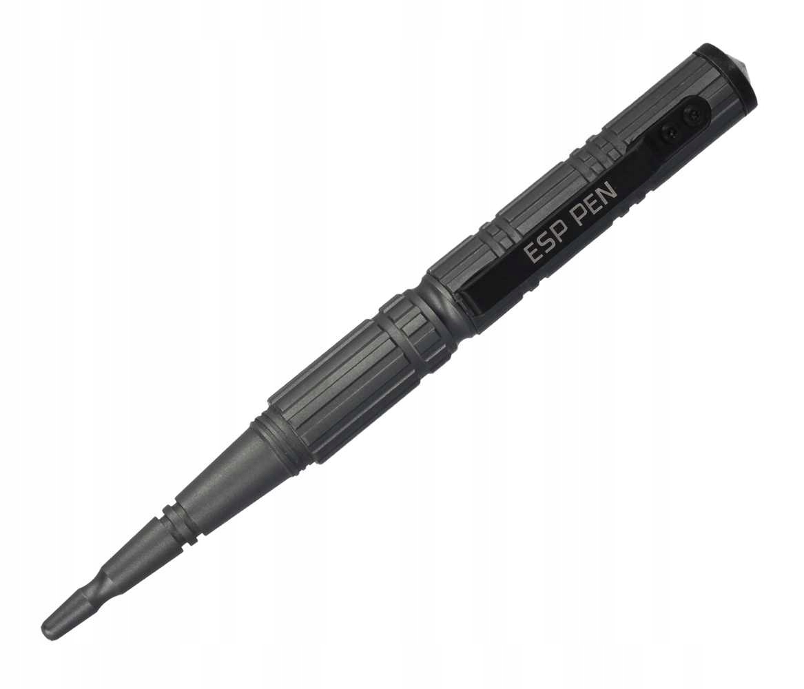 Тактична ручка ESP Black (KBT-02-T) – це легкий і дуже корисний предмет, який використовується переважно для самозахисту. Виготовлений повністю з авіаційного алюмінію титанового синього кольору, крім того, що на ньому можна писати, він також може використовуватися як куботан. Ця ручка є єдиним предметом самооборони, який можна носити на борту літака. Поєднання функцій куботану та ручки означає, що на нього не поширюються обмеження щодо кийків, ножів та перцевих балончиків.